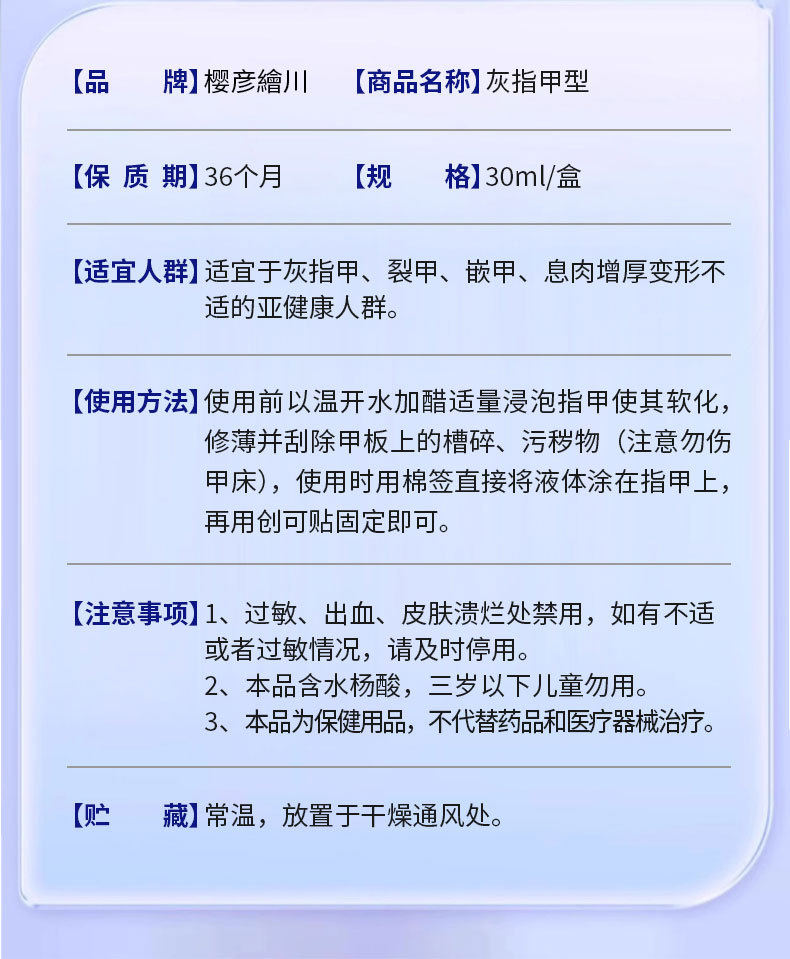 川本圣良灰甲液卸外用保健液手足爪増厚亮甲灰爪足部看護液