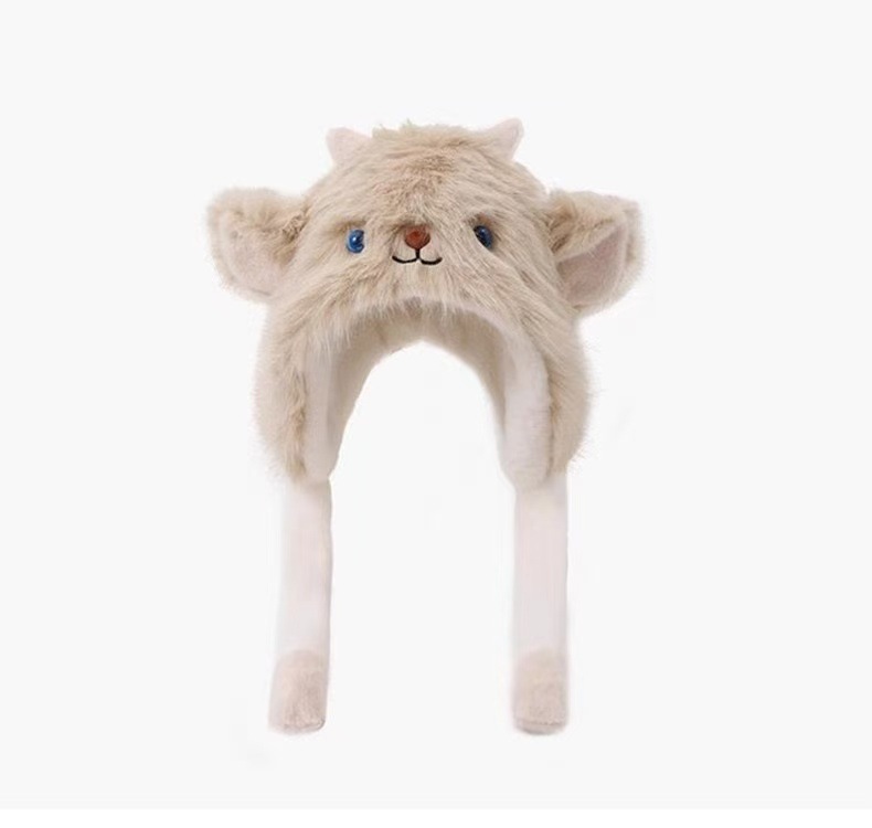苏苏同款卡通可爱小羊耳朵会动加绒加厚毛绒帽子女保暖防寒雷锋帽