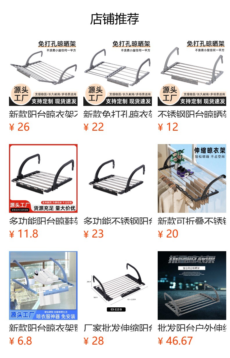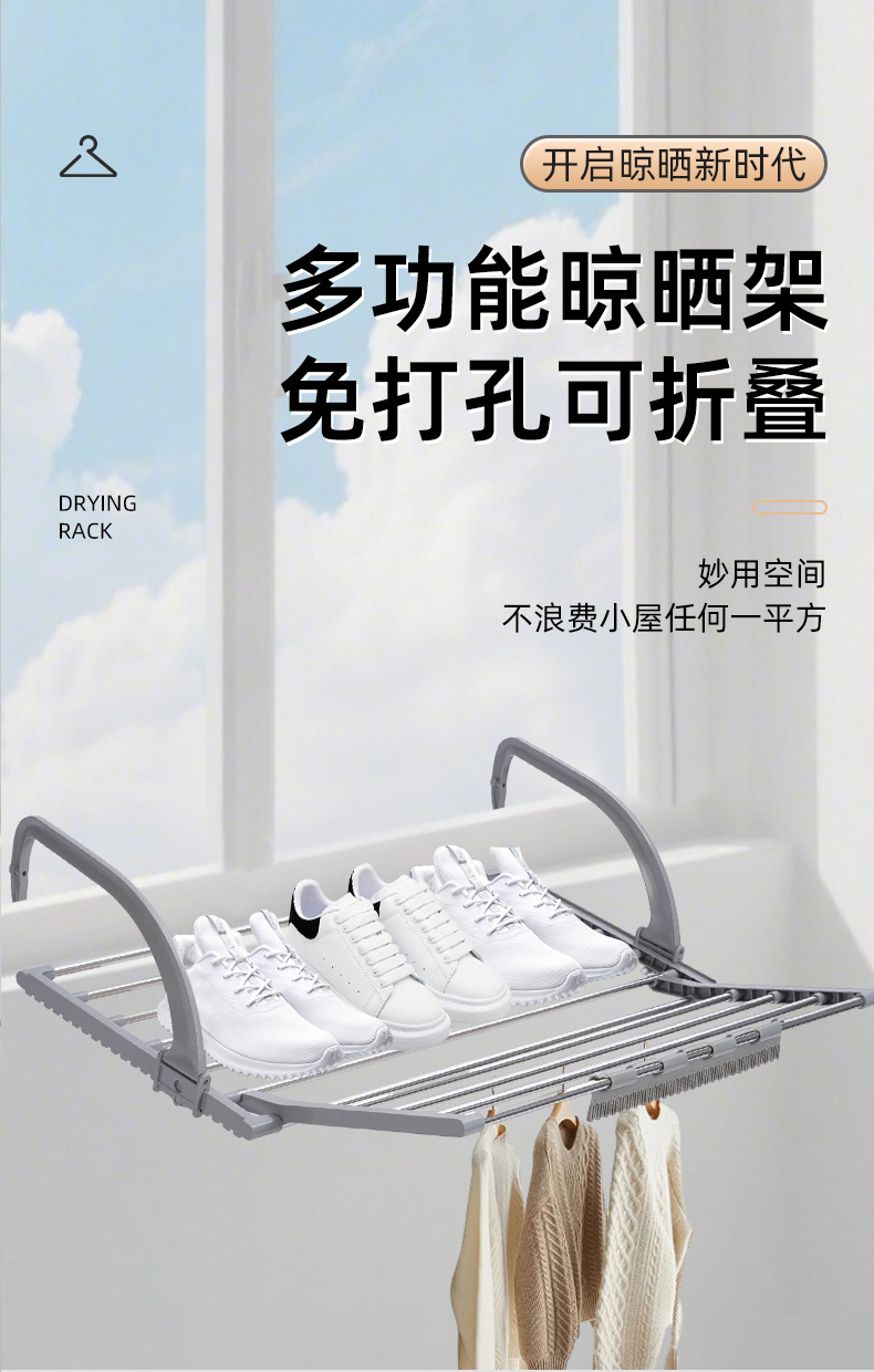 不锈钢阳台晾晒架便携可折叠窗台晾衣架简易收纳晾鞋架免打孔衣架