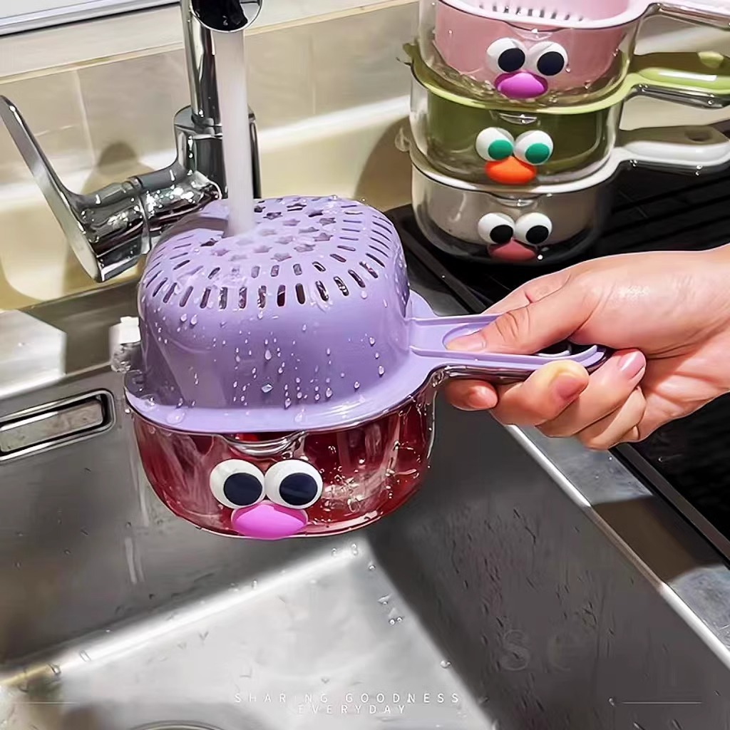 ドーパミン排水バスケット家庭用キッチン肥厚二層野菜洗濯バスケットポータブル中空排水フルーツ米洗い多目的盆地