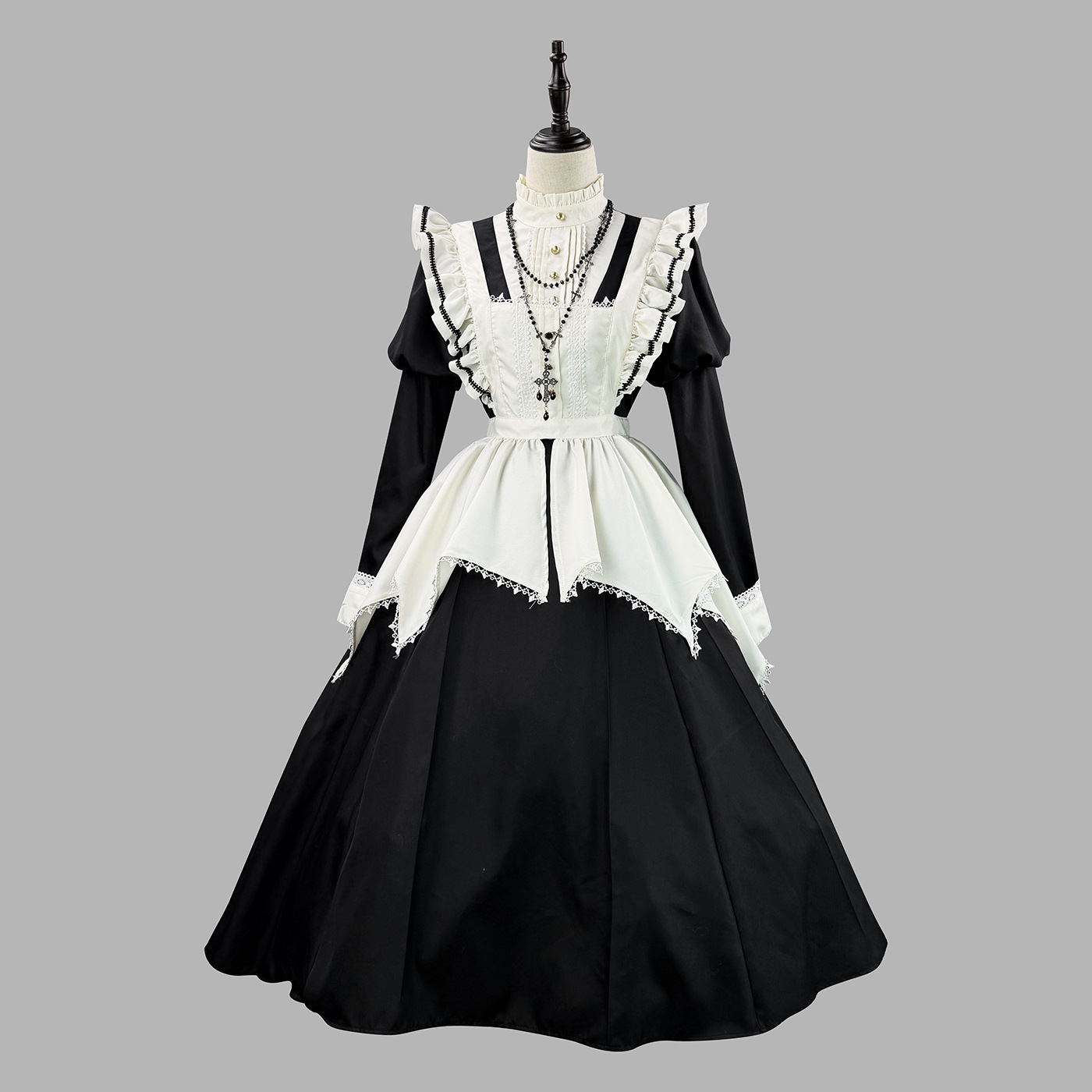 クロスボーダー新製品ゴシック修道女黒ロングとショートOPスリーブエプロンマルチウェアメイド服ハロウィンメイド服