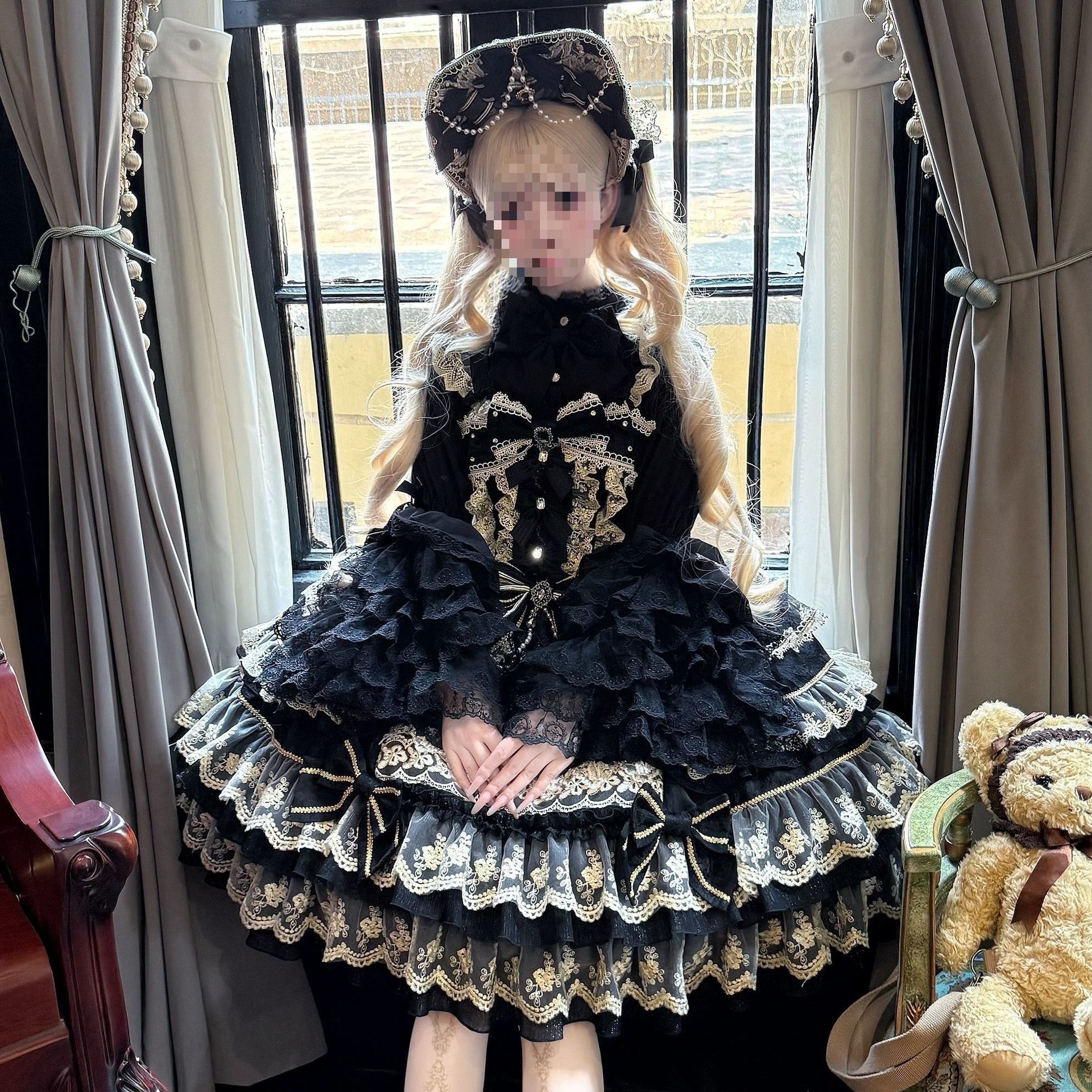 连衣裙+围裙+肩带*2+接袖*2+项饰