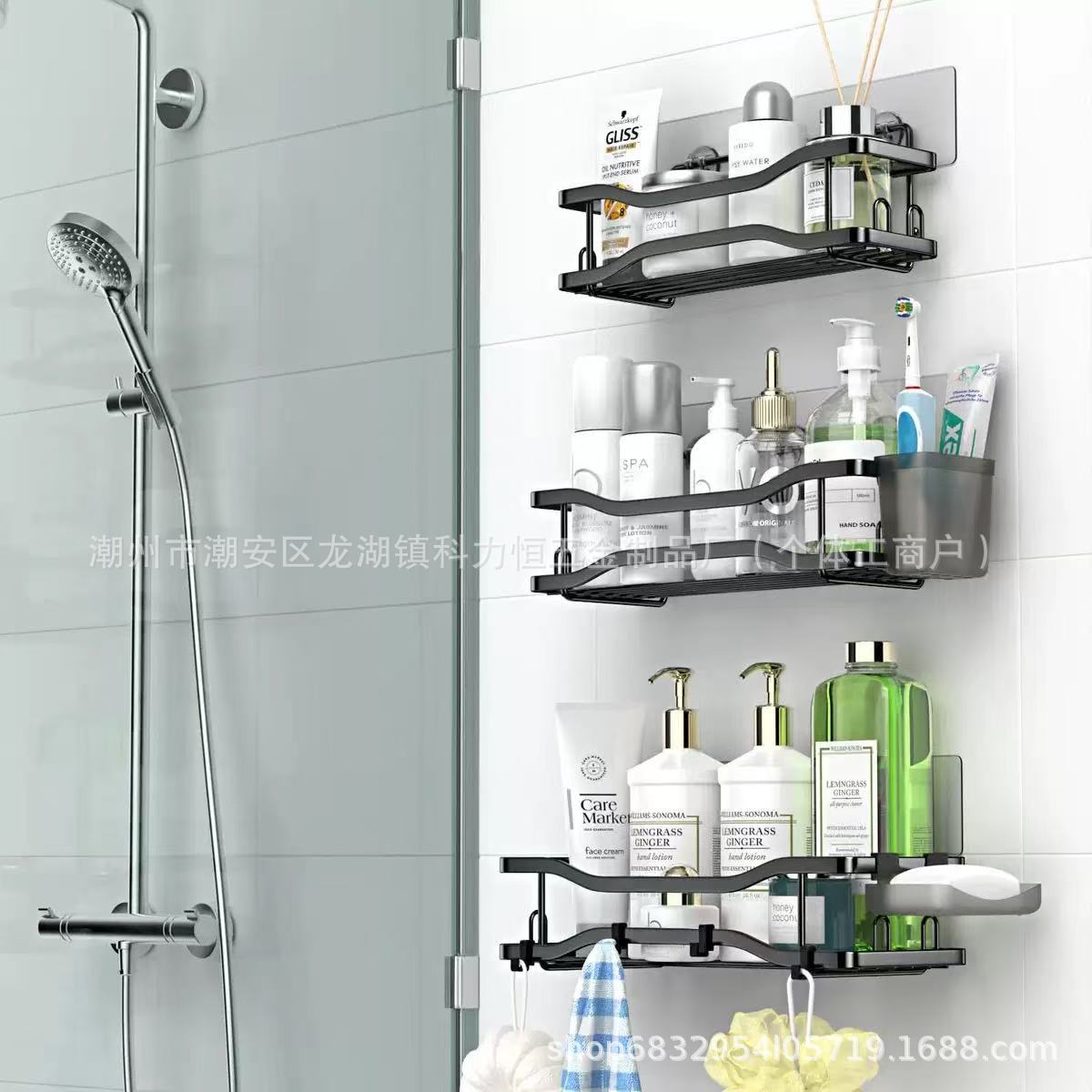 バスルーム収納ラック、バスルーム壁掛け、パンチフリーのバスアメニティ収納ラック、トイレシャワールーム整理ラック