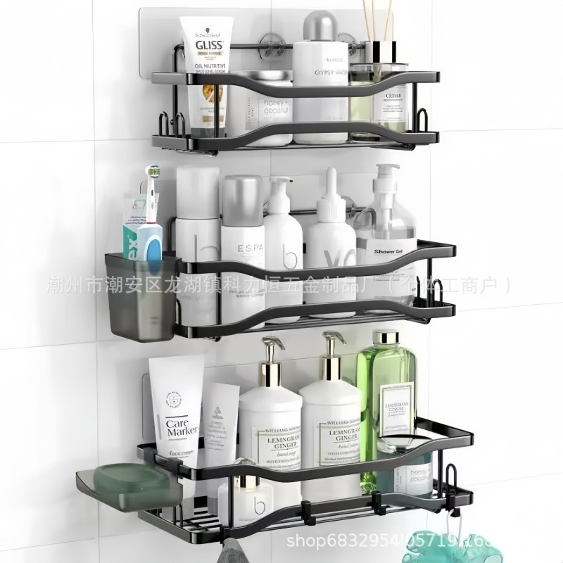 クロスボーダーバスルーム収納ラックパンチフリーアイアン三角ラックバスルームトイレキッチン壁掛け収納ラック壁