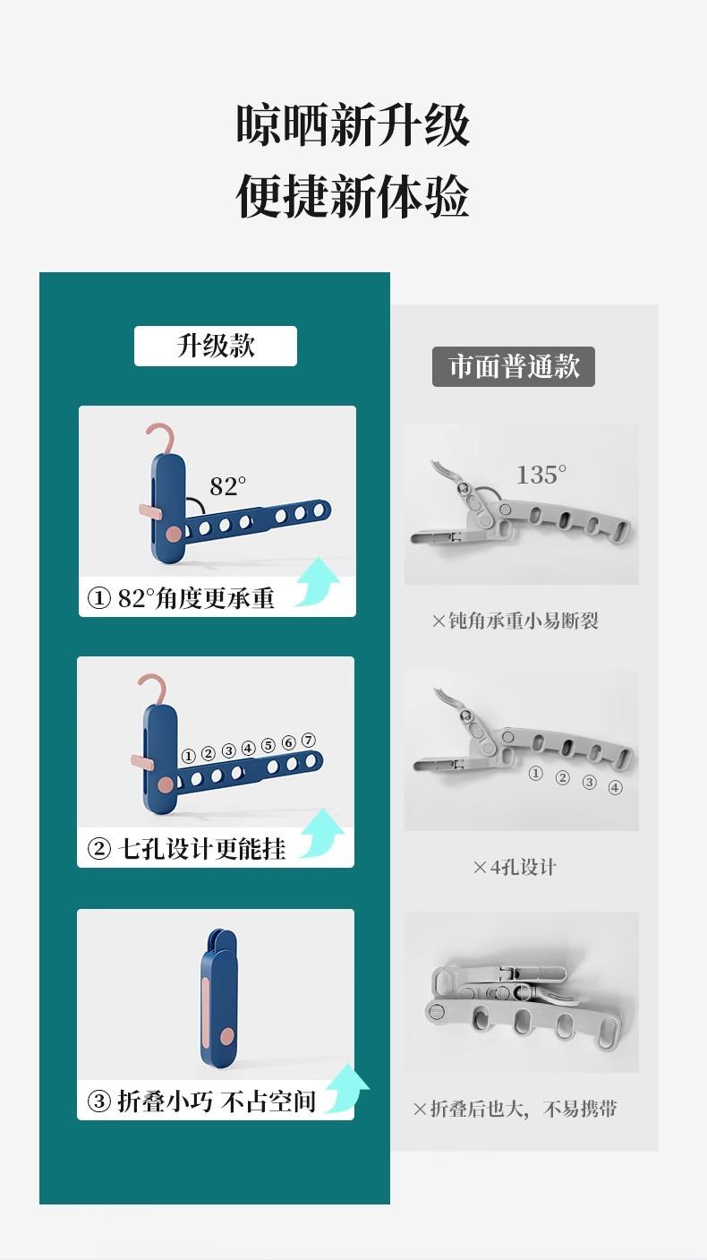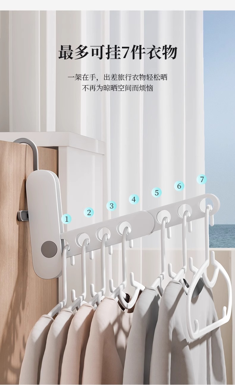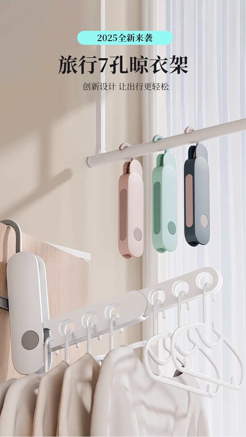 【原创】旅行折叠衣架便携七孔晾衣架旅行出差酒店多功能挂架神器