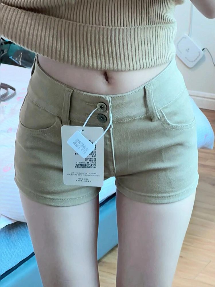 アメリカンハイストリートカーキデニムショートパンツ女性用 2025 夏の新しい多用途ホットガール痩身ヒップカバーアラインメントホットパンツ