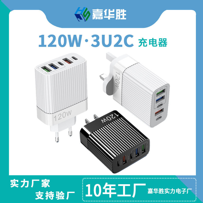 120W 急速充電充電器 3USB+2PD マルチポート充電器 EU プラグ US プラグ直接充電