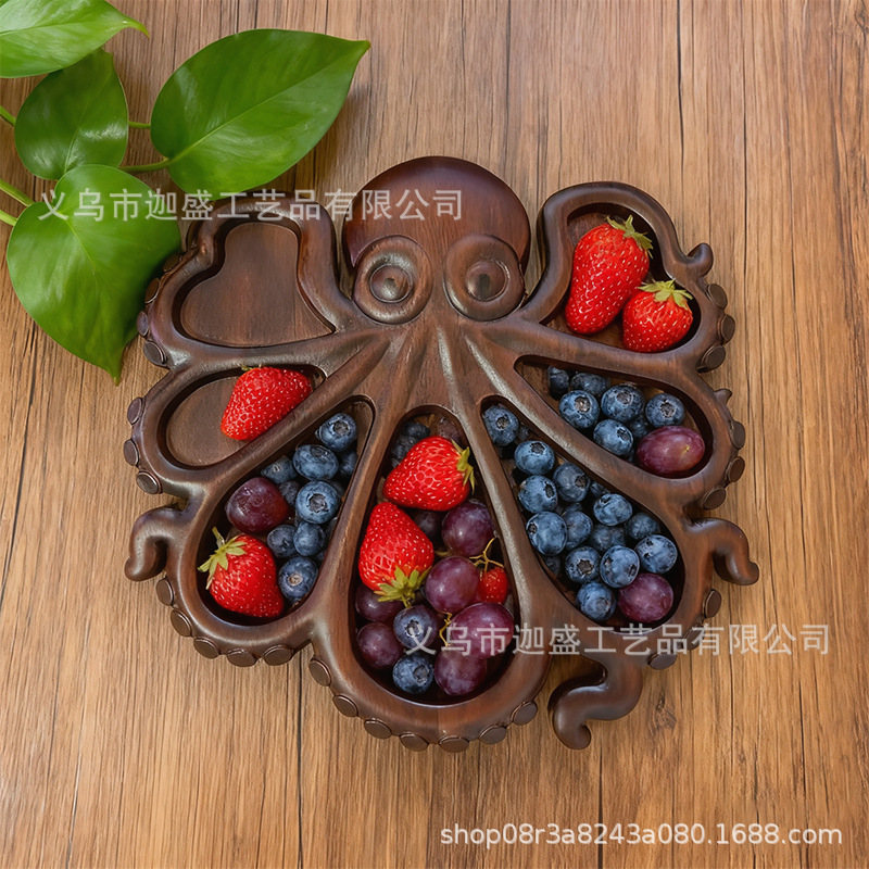 跨境新款章鱼果盘水果托盘工艺品摆件高级感小众居家桌面木质摆件