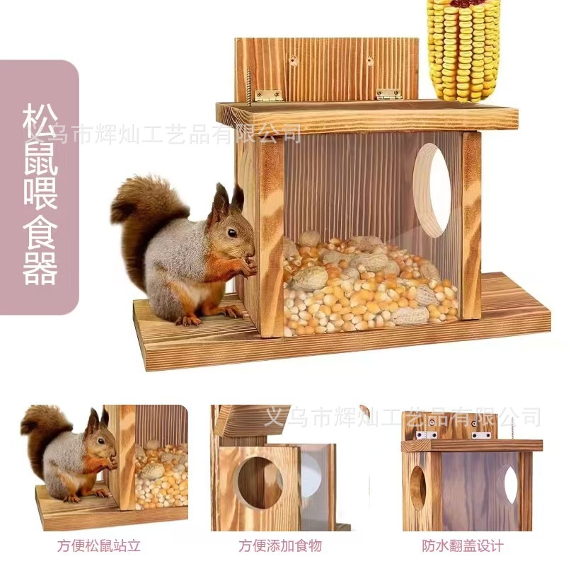 越境新品リス給餌器木造工芸品屋外庭園装飾手作り置物高級感大衆