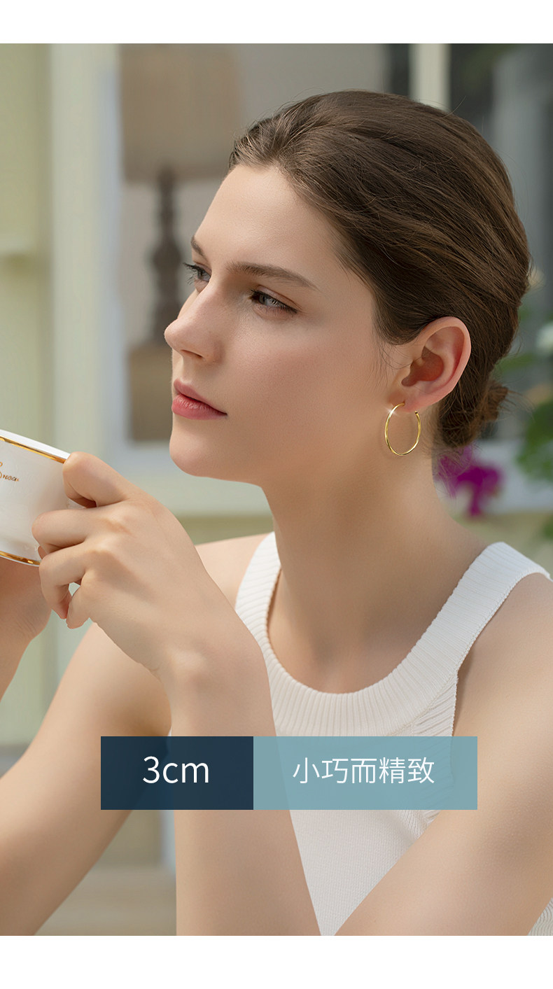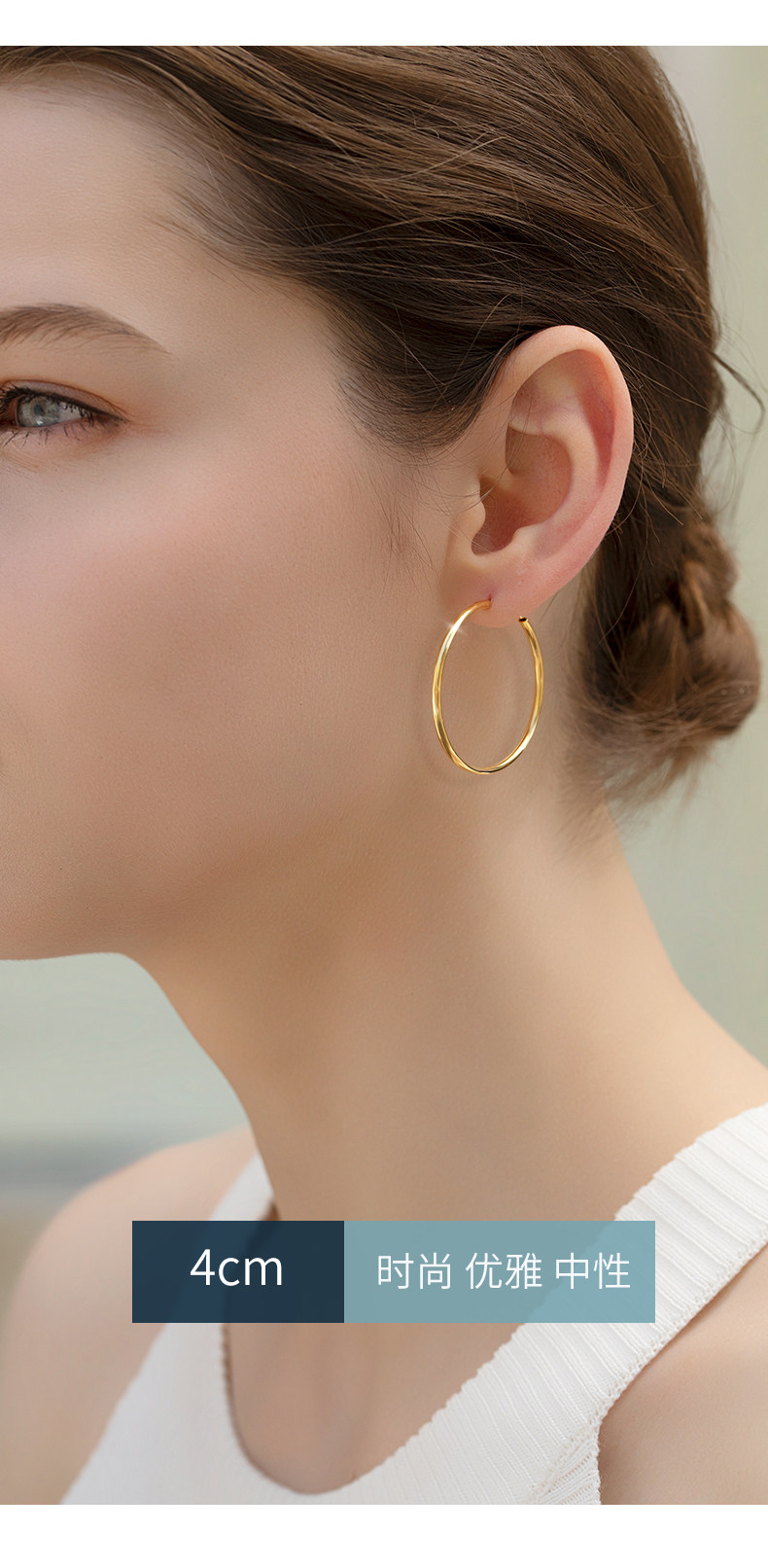 金色大圈耳环简约气质镀925银针女光面韩版气质小众新款夸张耳圈