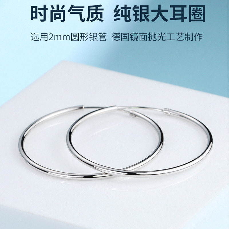跨境热卖镀925纯银针素圈大圆圈耳环女气质高级感耳圈新爆耳耳饰