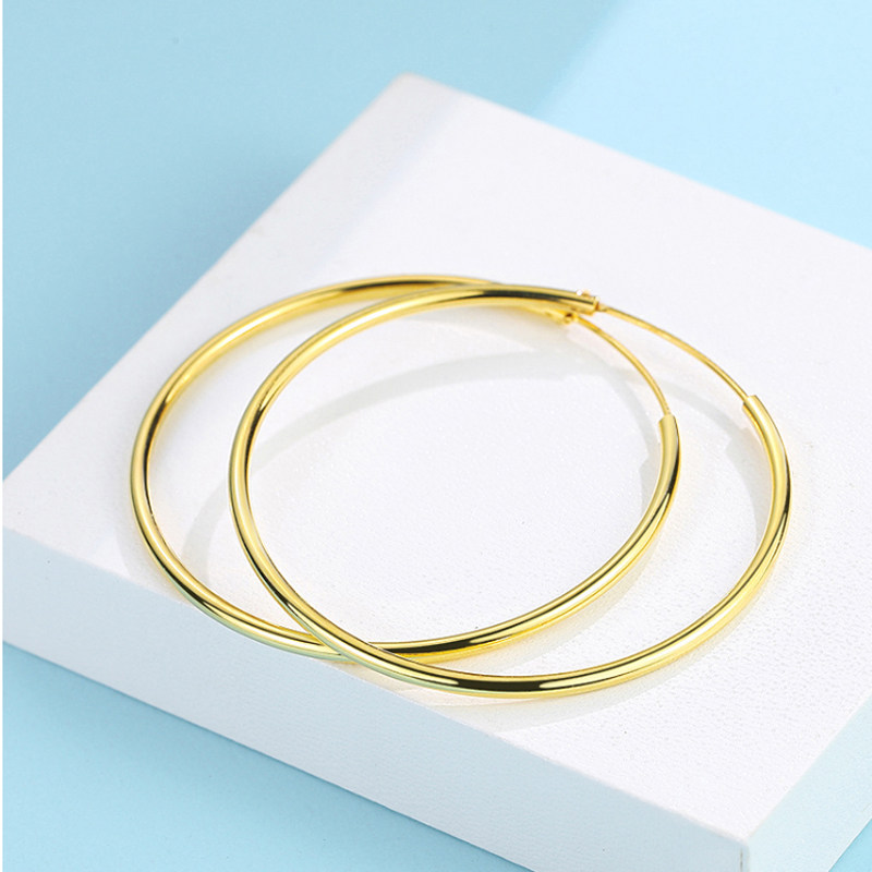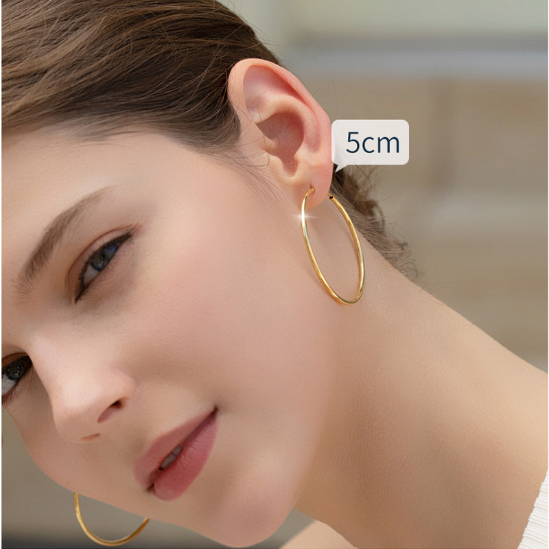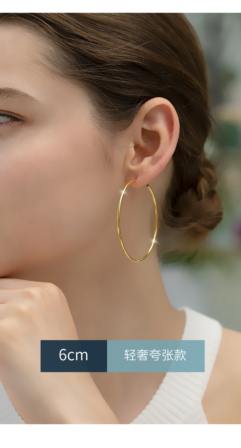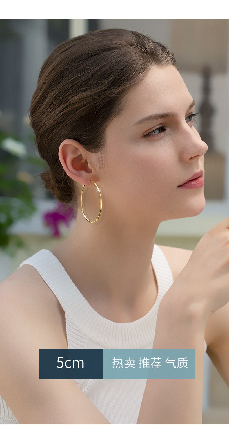 黄金色のイヤリングの素輪の極めてシンプルな光沢面s925銀の女性の誇張のイヤリングの卸売りの気質のネットの赤い大きい輪の耳の装飾品