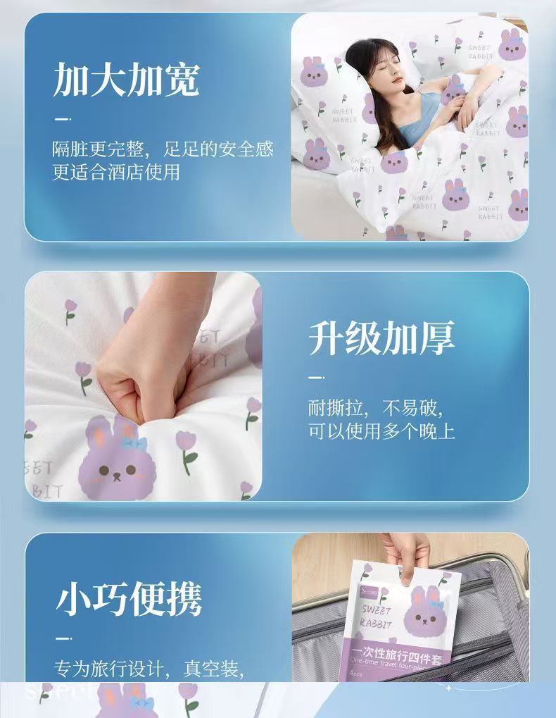 ランダムホテル寝具3点セット、4点セット、プリントトラベル4点セット、ベッドシーツ、掛け布団カバー、使い捨て枕カバー