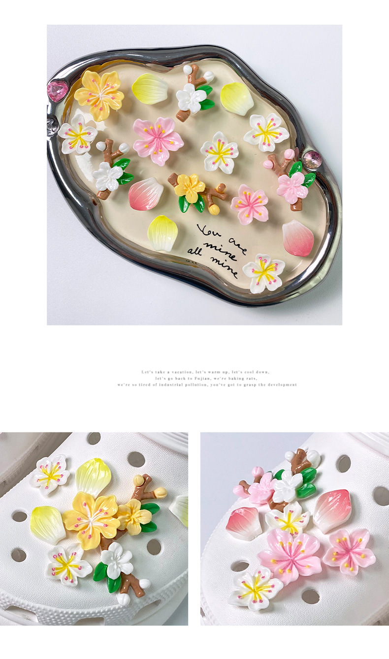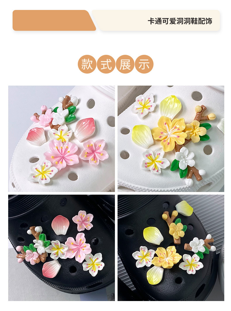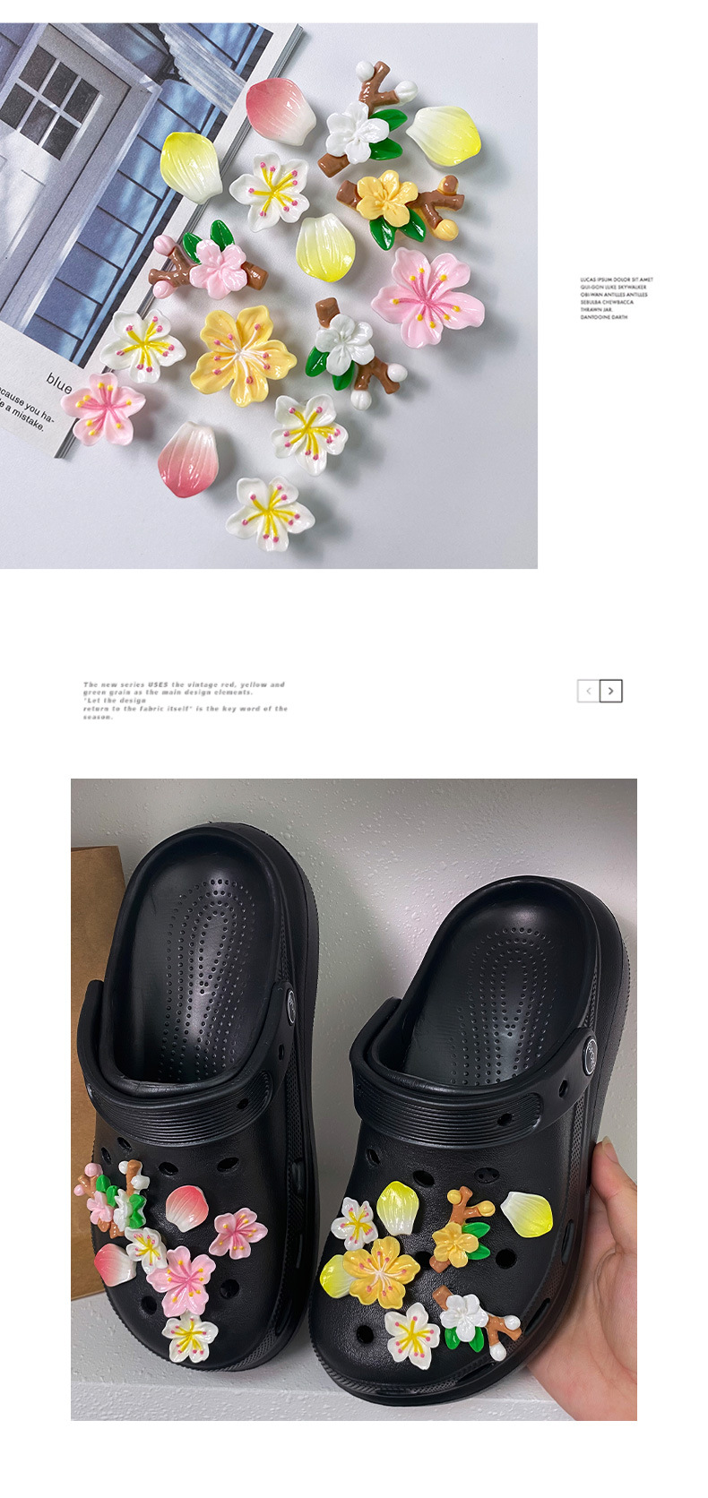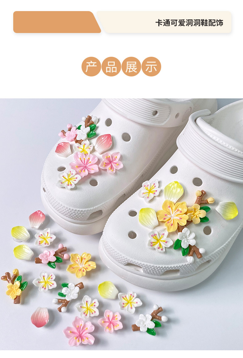 黄色とピンクの桃の花取り外し可能な穴装飾バックル卸売下駄靴花夏かわいいスリッパ装飾バックル