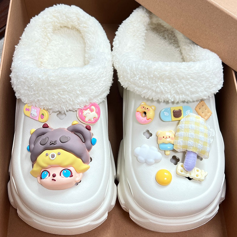 洞洞鞋加绒棉套冬季保暖棉拖鞋加厚软毛绒套可拆卸毛毛内衬鞋套