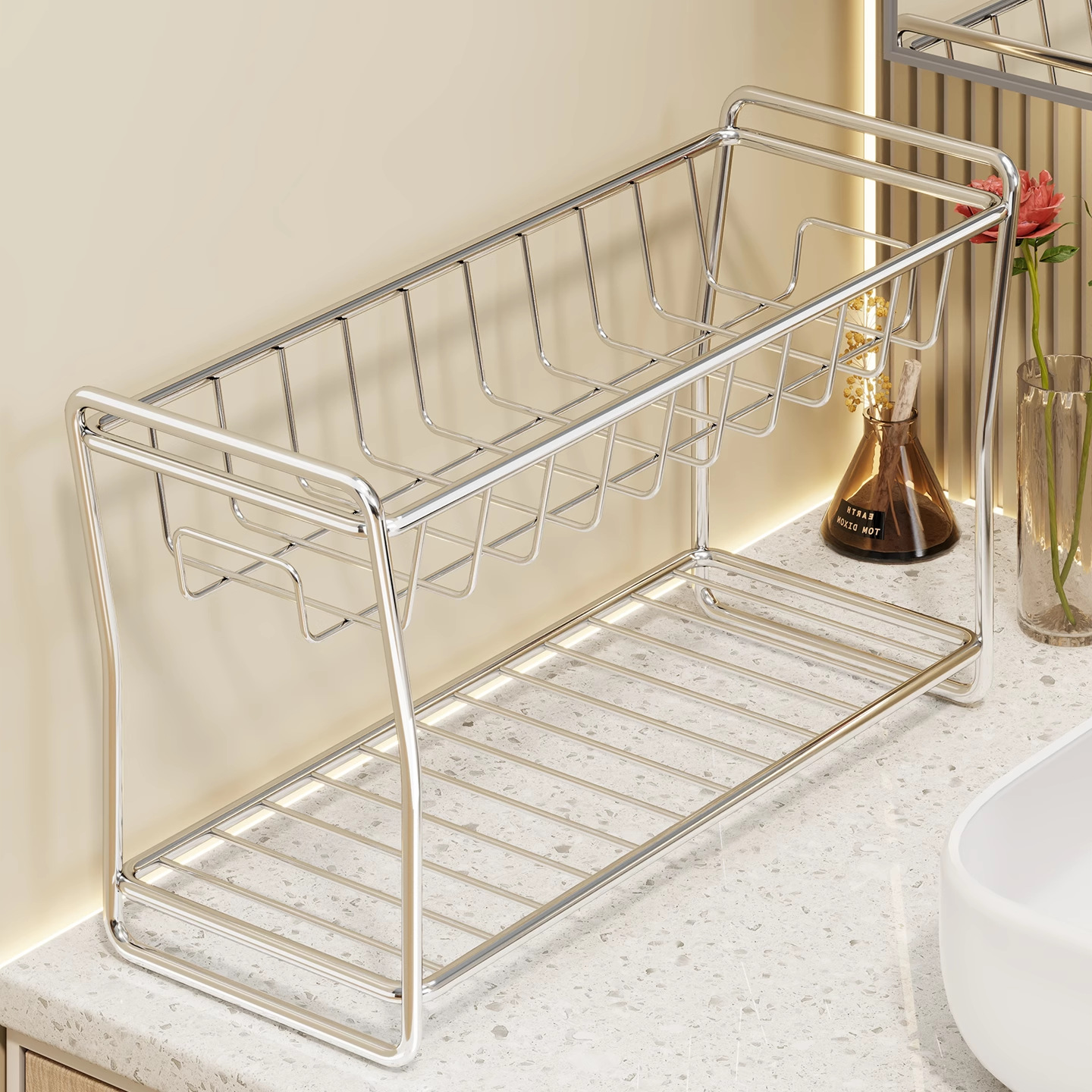 置物架单层洗漱台桌面收纳盒沥水篮置锈钢牙刷架化妆刷卫生间浴室
