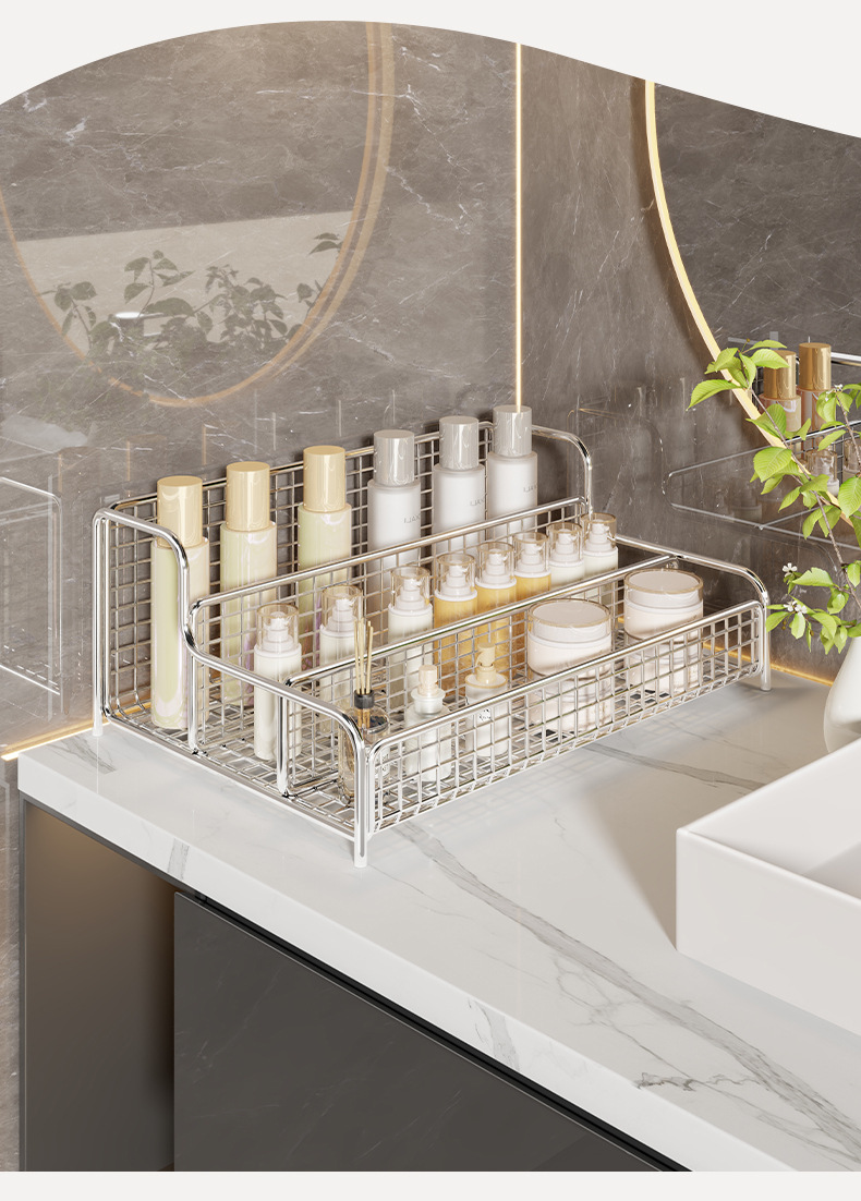 卫生间浴室洗漱台桌面多功能化妆品整理盒架子不锈钢置物架收纳架