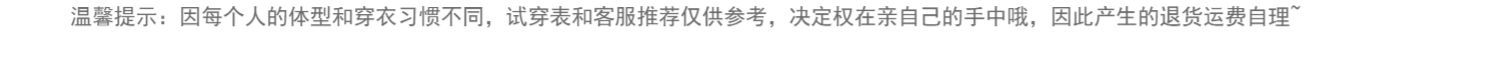 关于售后:偶有存在线头杂线/三标不全(剪标无吊牌)/抽丝等不影响穿着的小问题,介意勿拍 有现货的一般1-2天内发走,个别款很慢的2天内未发出会留言.节假日会在3天左右发走,默认发中通快递 关于色差,都有,拍照设备为手机8P.由于拍摄角度/环境光线不同,会产生一定的色差,详情页图片多浏览几张,忙碌的生活已经够累了,别让购物这么愉快的事也变得闹心;对颜色特别敏感的下单请慎重,网购无法避免收到货记得首先检查是否有明显质量问题,48小时内将情况拍图反馈给客服,可以修补的问题我们会报销修补费用,(衣物属于消耗品,过了7天半个月再来反馈质量问题就无法处理的喔)浅色易脏的衣物试穿可戴下塑料袋避免弄脏衣物不能退换. 小店仅支持7天内退换货,(衣服全新没有穿洗过,无异味,或者明显损坏/污渍等等),退货直接后台申请退,请勿确认收货在申请退,确认收货后在申请退的,一律不处理;逾期超时不处理不退换,请合理安排好时间进行退换.蟹蟹~ 宝贝尺寸均为手工测量,请允许有1-3厘米误差, 每个人即使身高体重一样,但体型身材三围也不同的,自己的身材自己了解,客服推荐的尺码仅供参考,具体请对照详情页尺码表哦,如有客服参考的尺码不合适问题,不承担退换货邮费喔 关于新衣和二手的问题,大家既然能网购也有一定分辨能力,吊牌只是参考之一,穿过的衣物味道是一般洗涤剂驱不完的,就算洗掉了,新衣和洗过的触感也不同,可以摸得出来,新衣和二手的颜色也有明显的区别,一闻二摸三看,如十分介意无吊牌的请慎重下单 拍下即为默认同意以上约定,购物是双方都愉快的过程,任何问题都可以找客服,能通过协商处理的问题都是小事,祝大家购物愉快