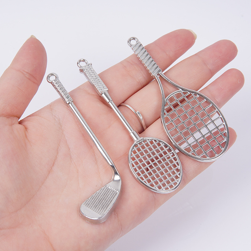 ミニ金属テニスラケットのキーホルダーは国境を越えて同じバドミントンラケットにクラブ会員のプレゼントを飾る