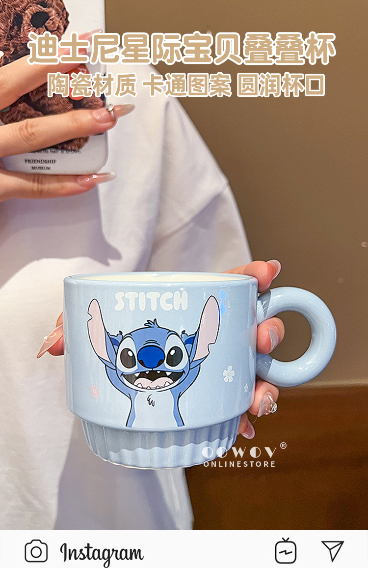 史迪仔卡通咖啡马克杯陶瓷叠叠杯子女生高颜值办公室喝水杯可家用