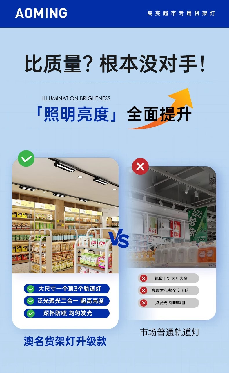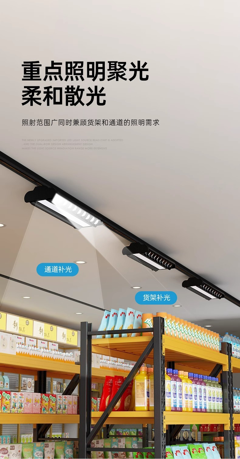 長条軌道灯散光灯補光灯服装店スポットライト商用直播間スーパー条形レールグリルランプ