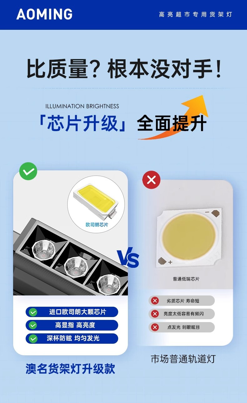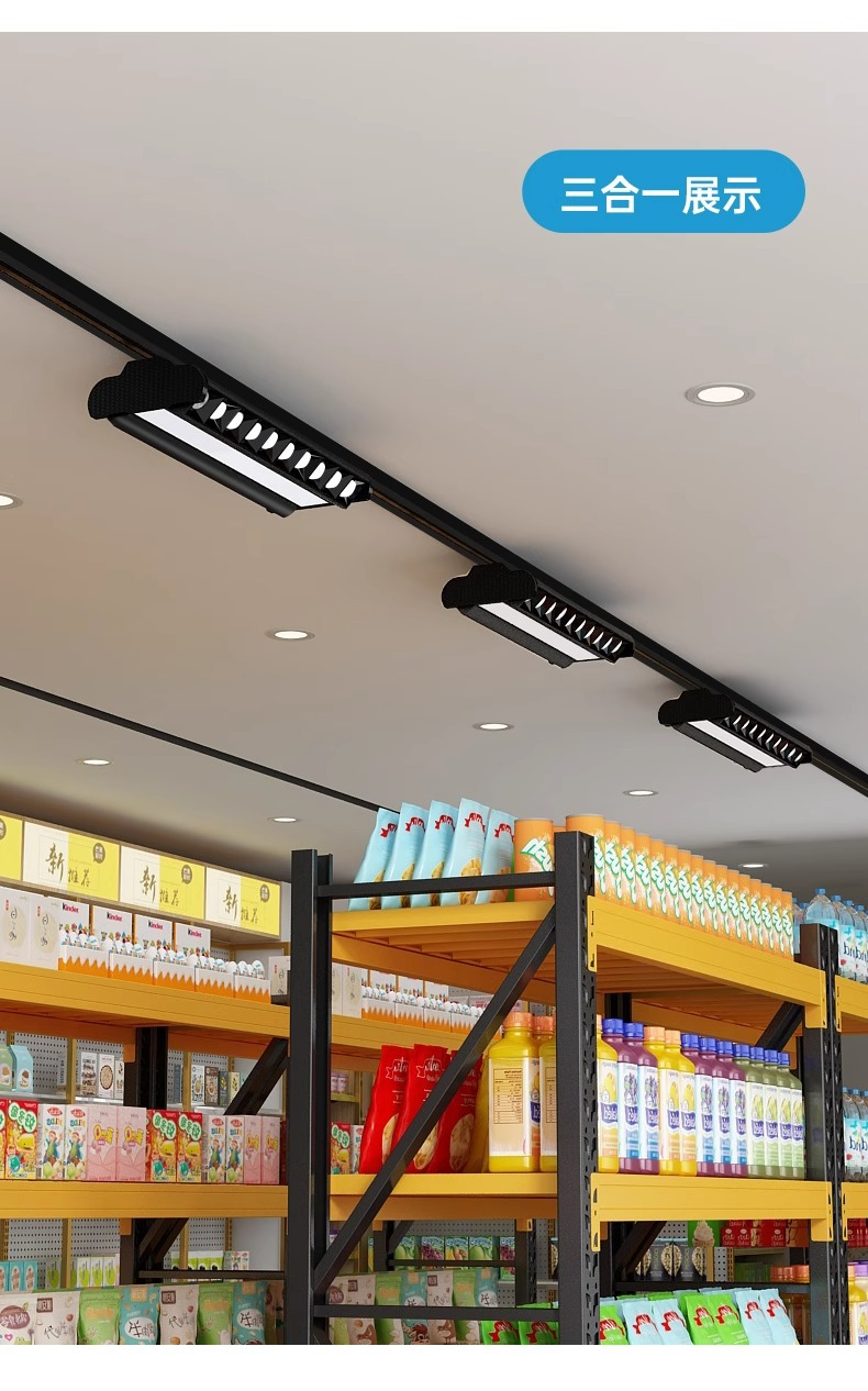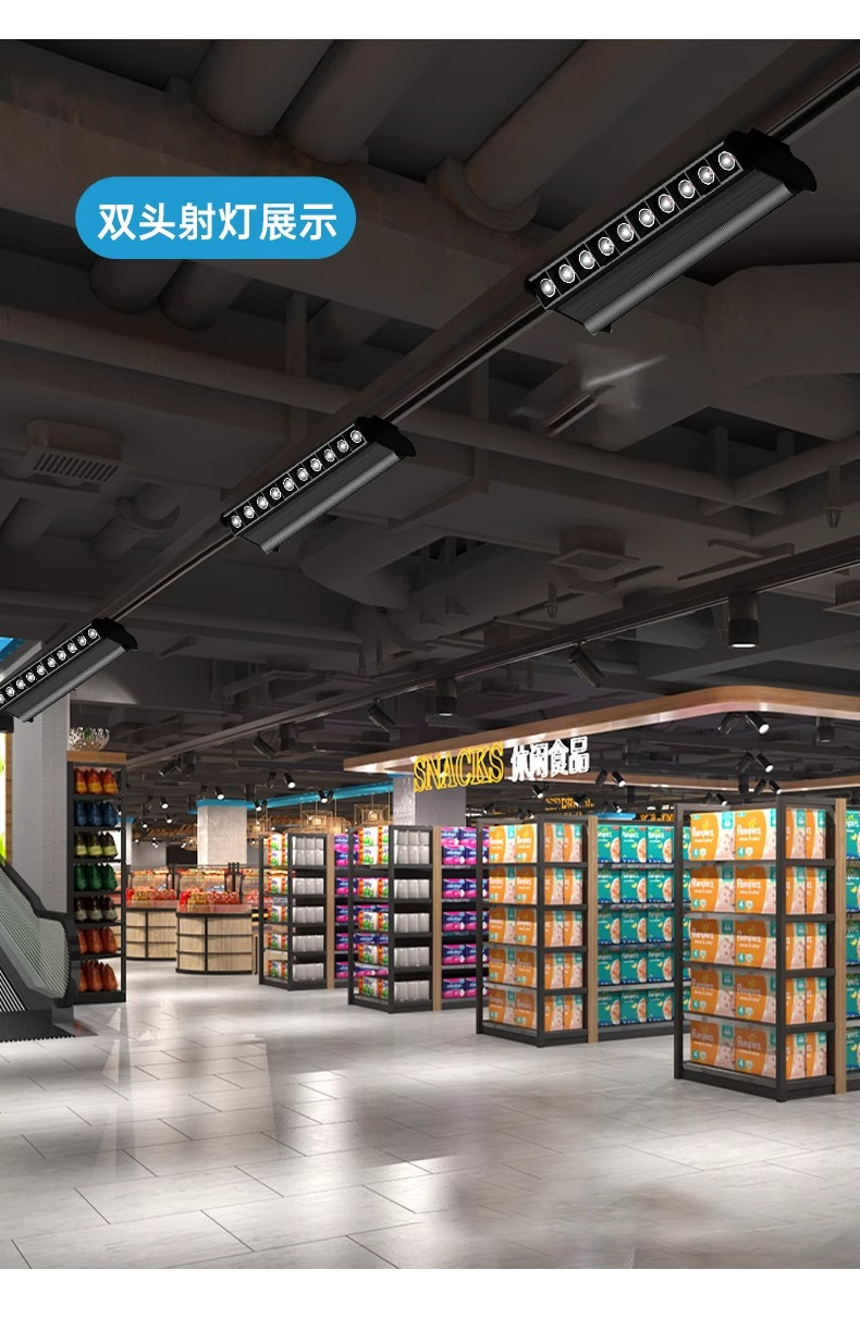 LED轨道灯超市生鲜专用长条灯商场货架灯格栅双排偏光射灯滑轨灯