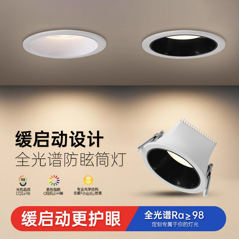 ディープカップ防眩ダウンライト埋め込み 75 ミリメートルスロー起動滅菌低ブルーライトフルスペクトル目の保護ホームリビングルームダウンライト
