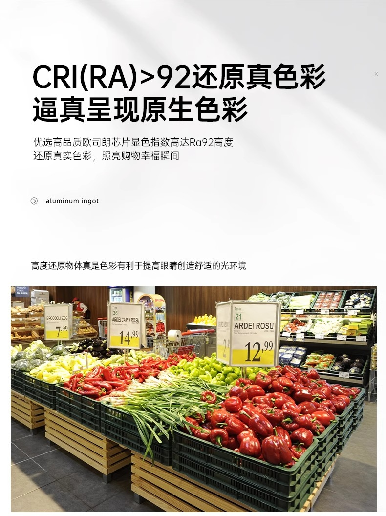 商场超市生鲜补光照明偏光货架灯LED防眩铝材便利店格栅轨道射灯