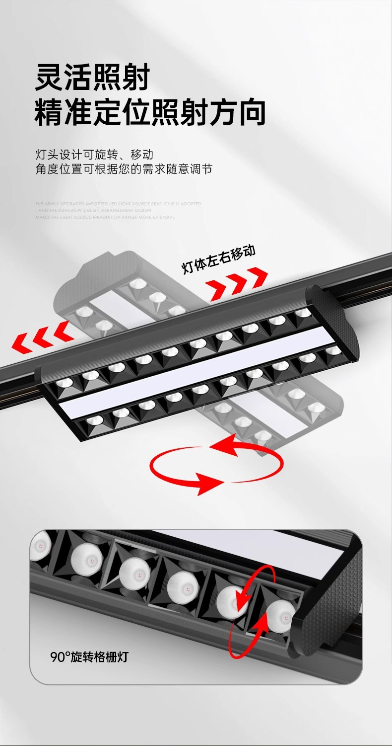 格栅灯商超专用灯轨道灯 磁吸格栅灯调角度泛光灯明装商照轨道灯