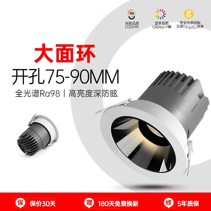 フルスペクトル目の保護ヒルスポットライト開口部 75 ミリメートル埋め込み家庭用防眩ワイドエッジ LED 天井ダウンライト