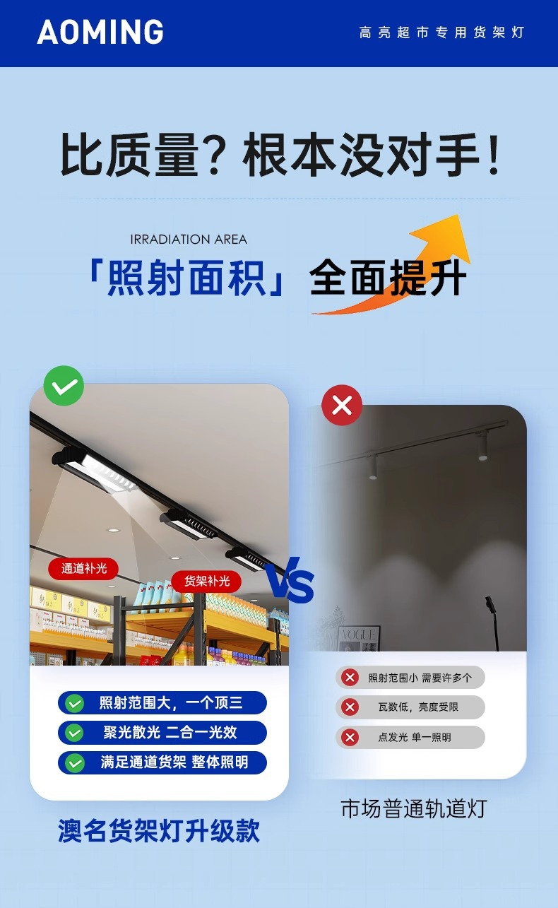 棚照明、スーパーマーケット照明、専用棚照明、スーパーマーケット照明、偏光スポットライト、生鮮食品LED防眩トラックスポットライト