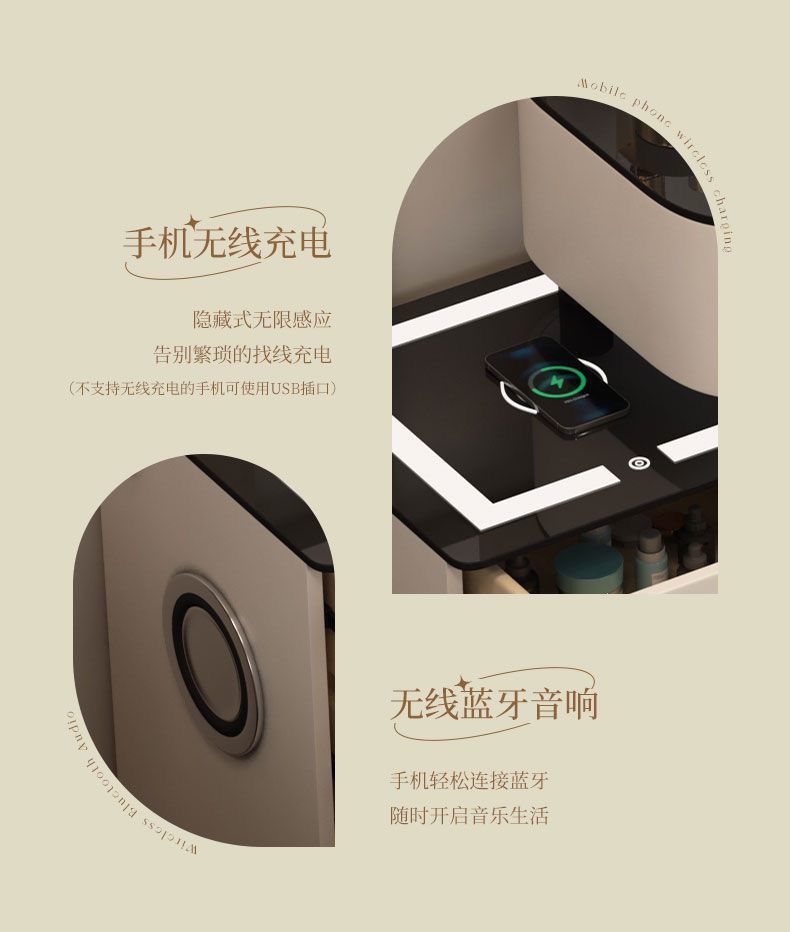 ライト高級花びらドレッシングテーブル寝室ドレッシングテーブルスマート家具インスタイルワイヤレス充電 Bluetooth オーディオ木製