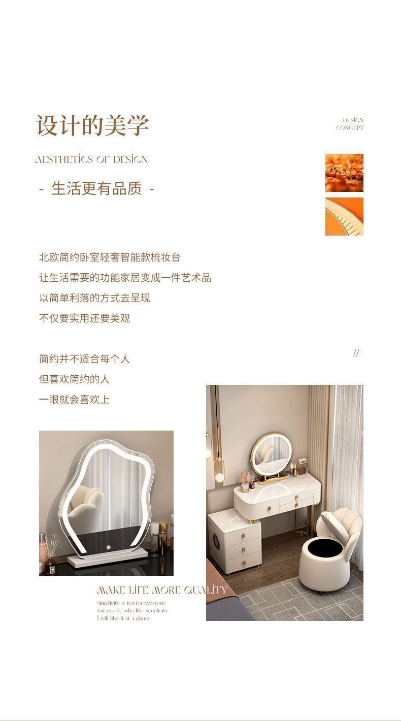 全实木梳妆台卧室现代简约化妆台智能化妆桌收纳斗柜一体密度板厂
