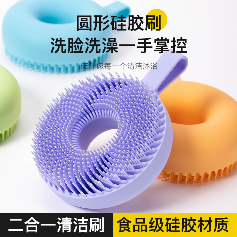 亚马逊热销旋风双面硅胶洗澡刷洗头洗澡二合一硅胶沐浴刷搓澡神器