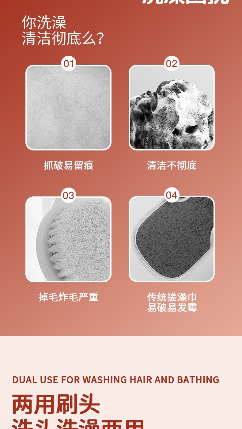 旋风硅胶洗头刷洗澡刷头发按摩梳头神器清洁头皮搓背搓澡沐浴两用