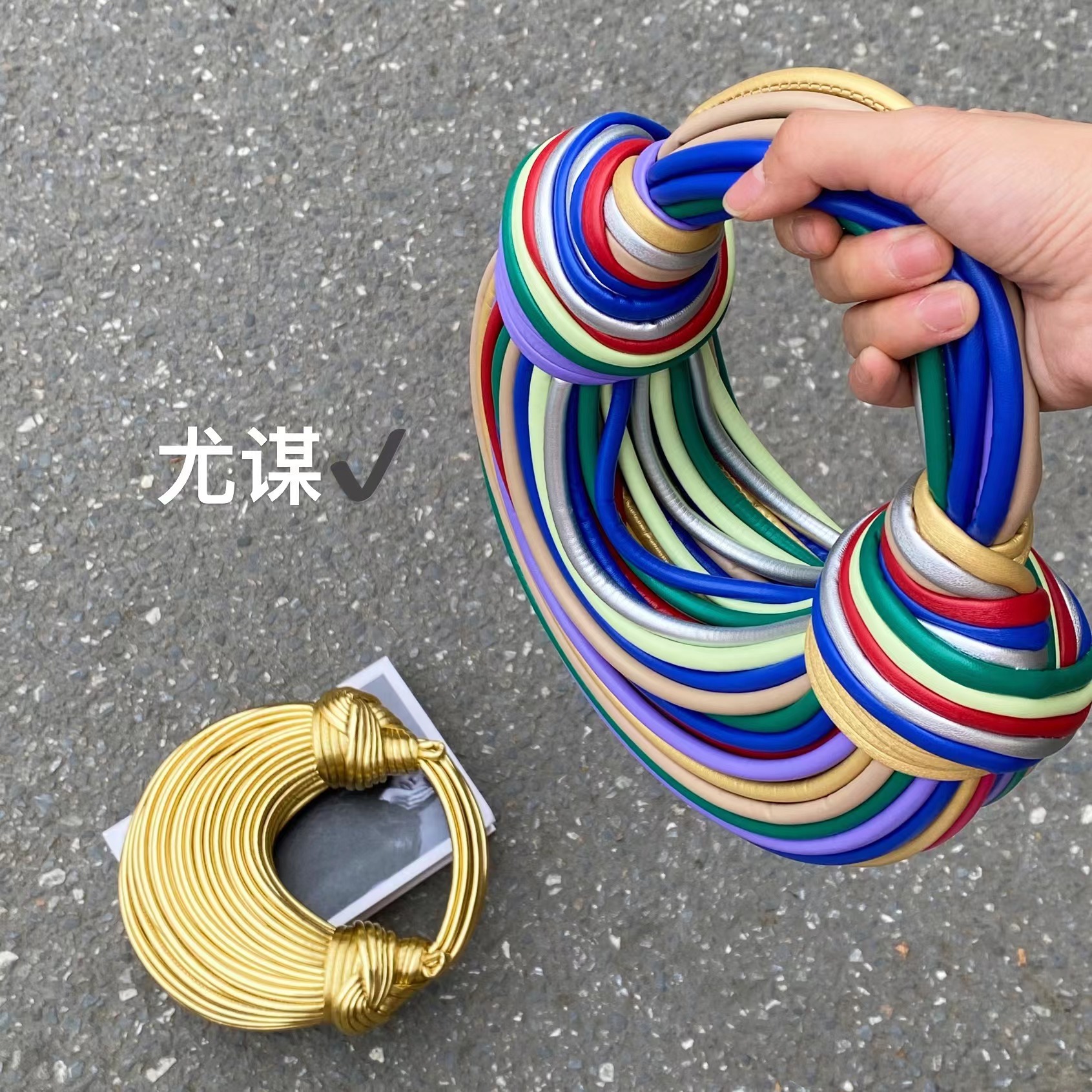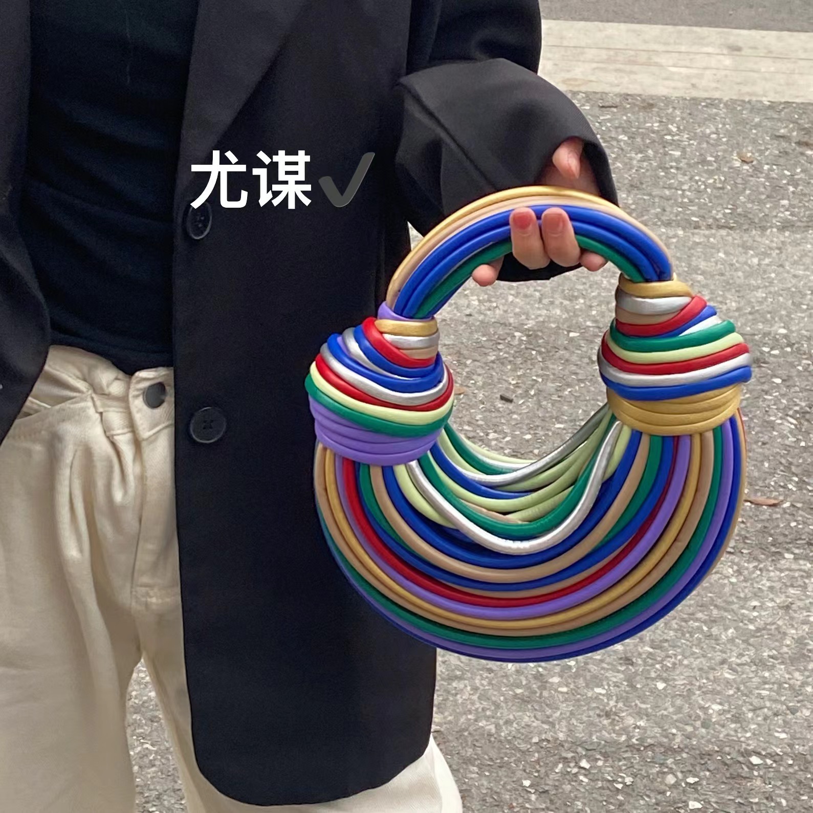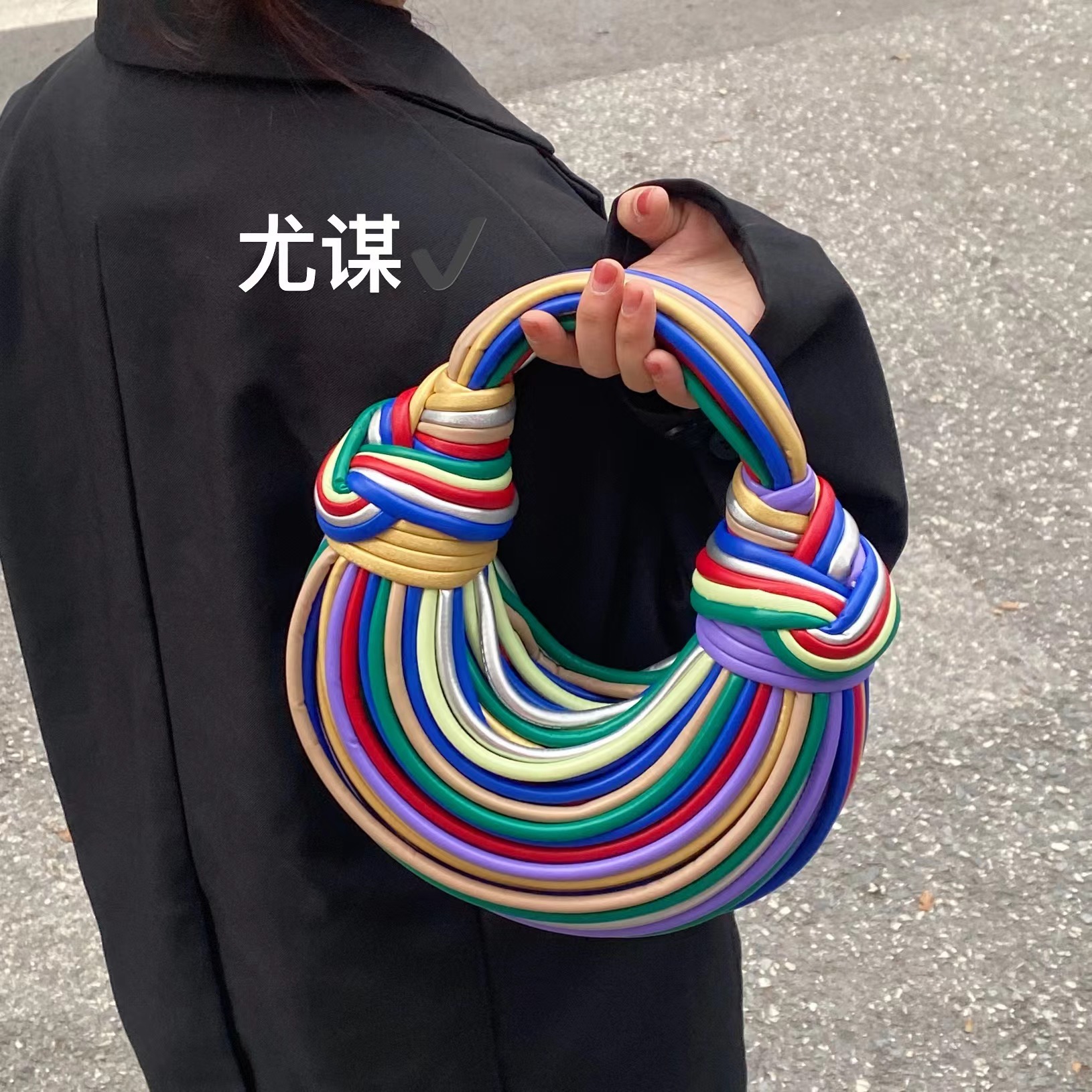 跨境热销新款时尚面条包个性设计百搭饺子包手工编织打结单肩女包