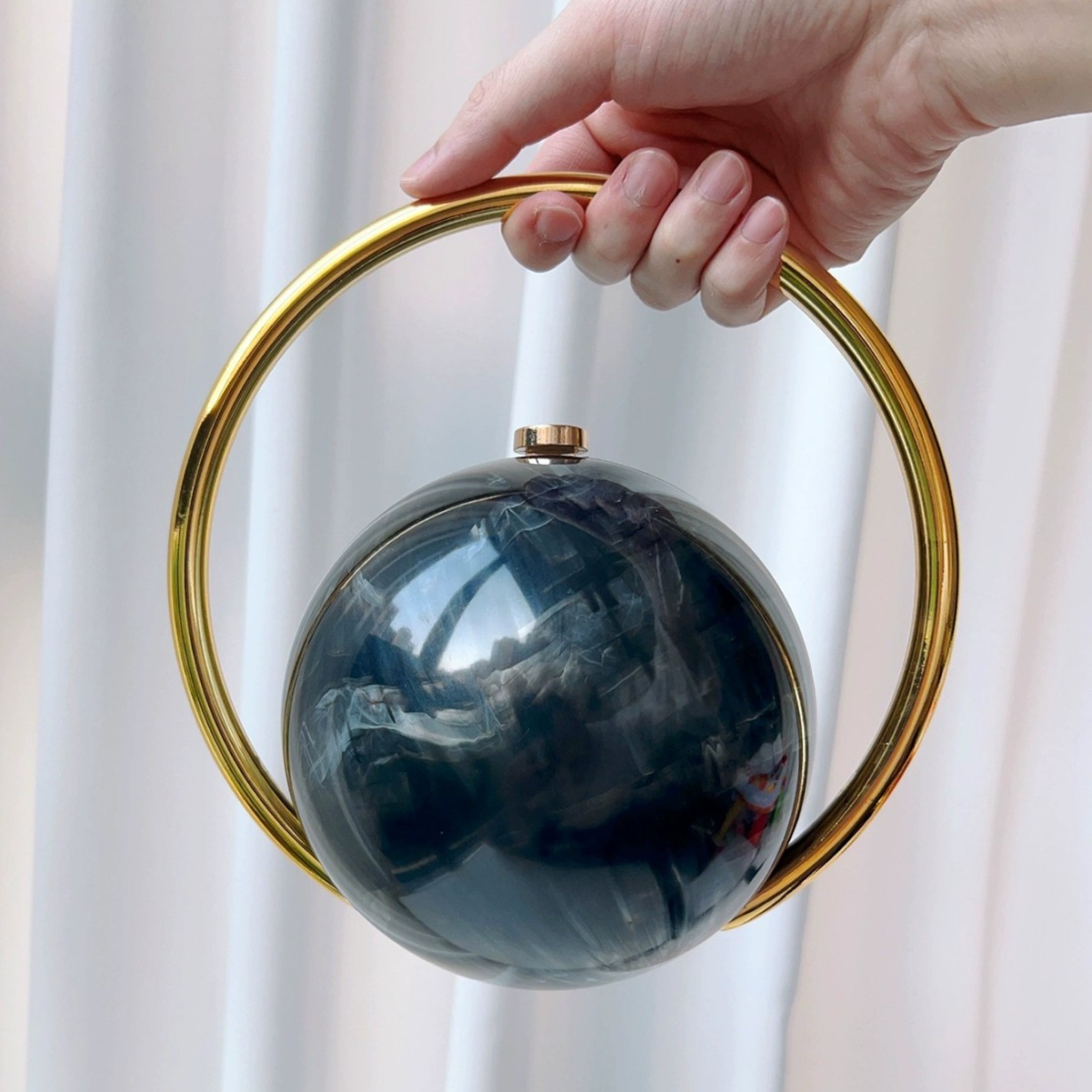高级感手提包女大理石纹2025新款球形晚宴包电镀提手简约走秀欧美