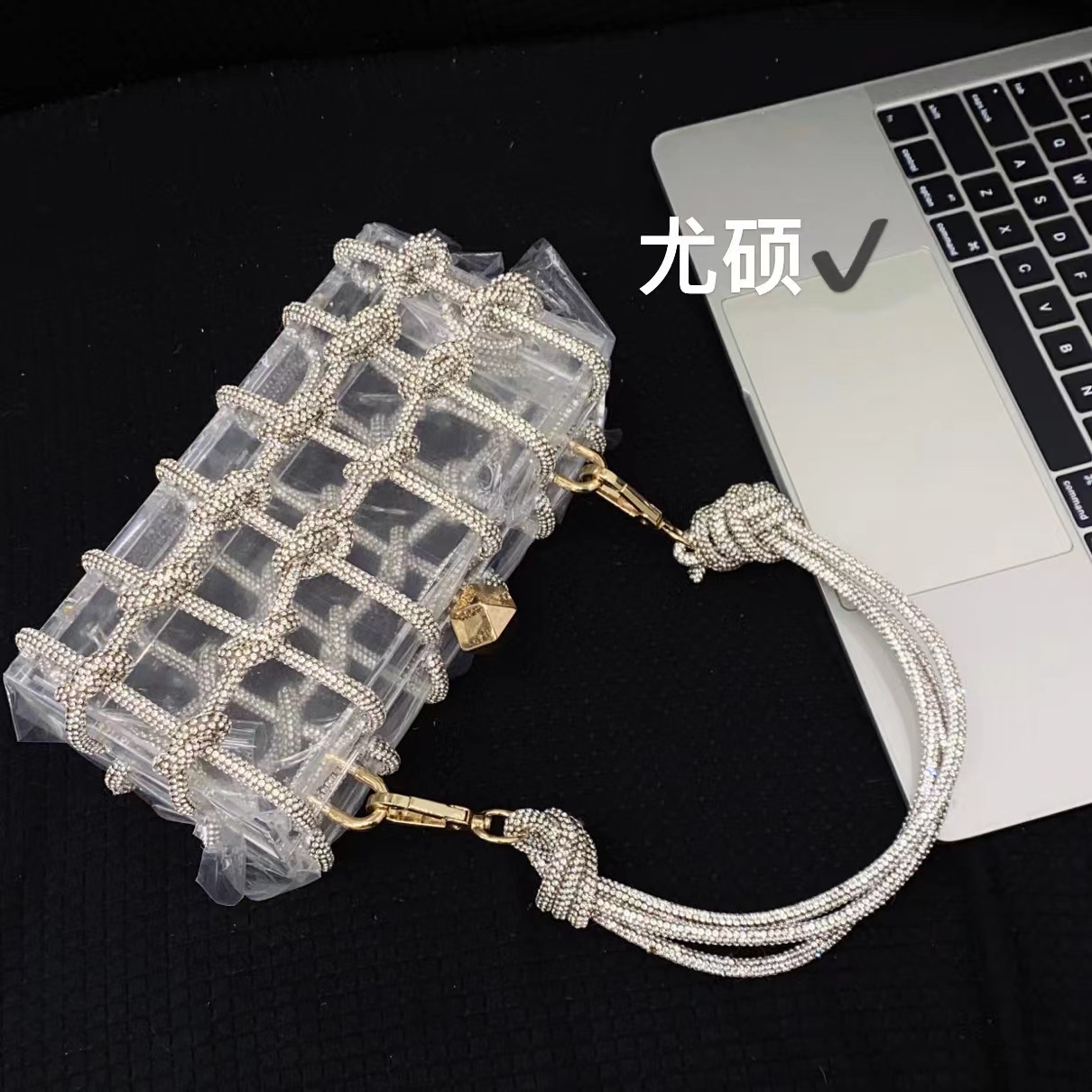 フランス式のキラキラした透明なアクリルケースの小方包宴会ダイヤモンド携帯電話の手は腋の下包を持っている