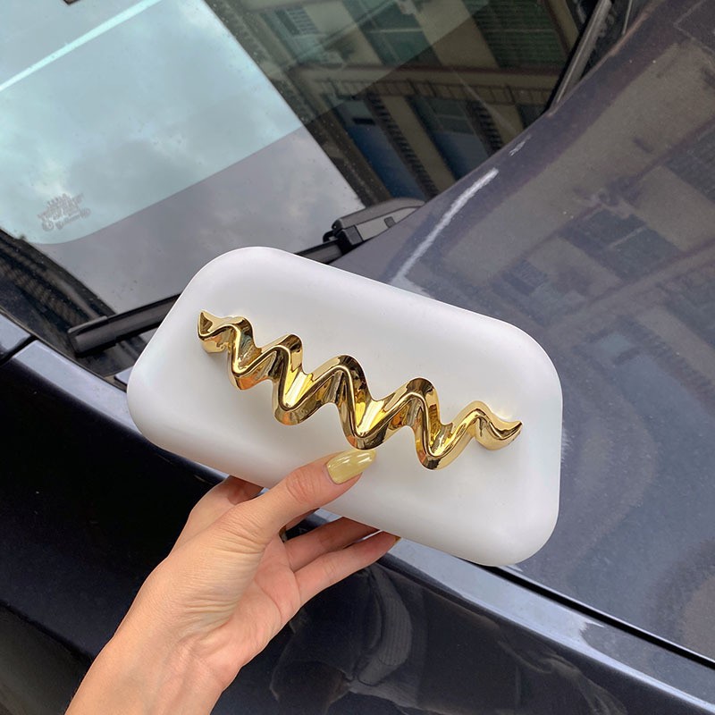 ファッションの個性的なアイデアのアクリルの金色の箱は宴会のキャンディー色のガチョウの卵の雲の貝殻の手を包んで斜めのショルダーバッグを持ちます。