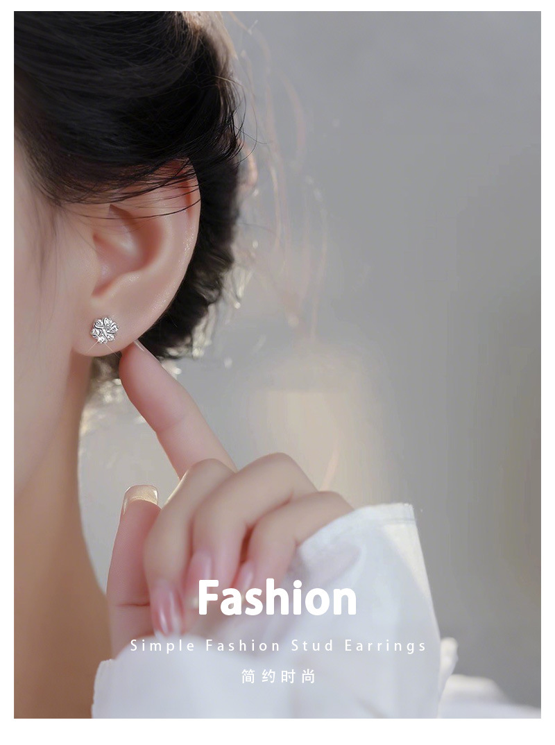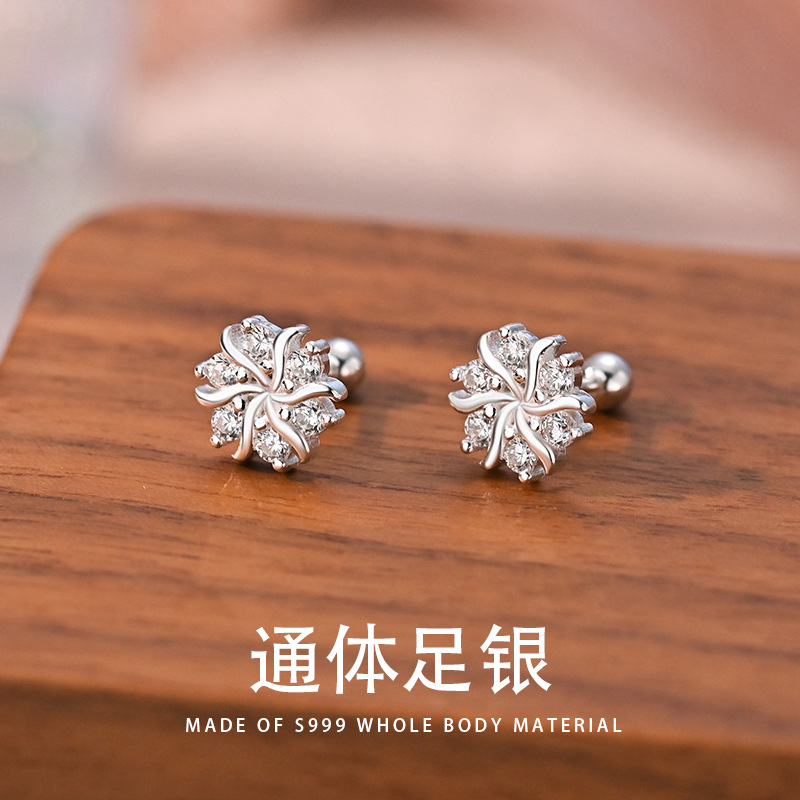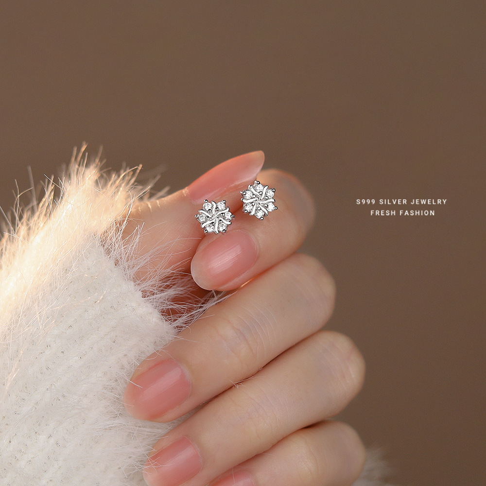 S999 純銀スノーフレークジルコンイヤリング、軽い高級感とハイエンド、多用途の耳ピアス、純銀イヤリング、ニッチデザインイヤリング
