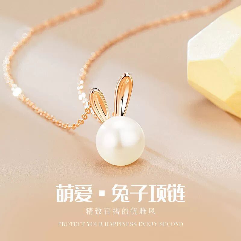 925真珠のウサギのネックレスの女性のかわいいウサギの耳の鎖は高級感があります。