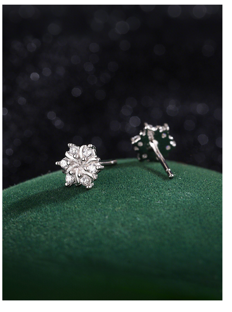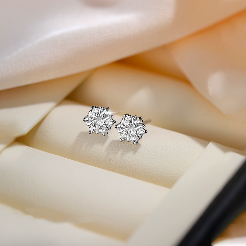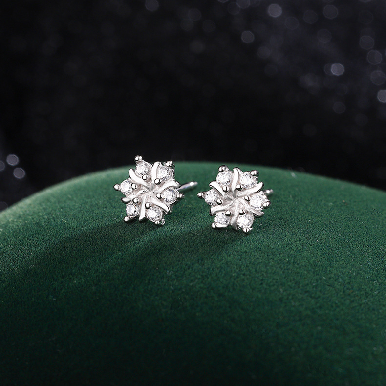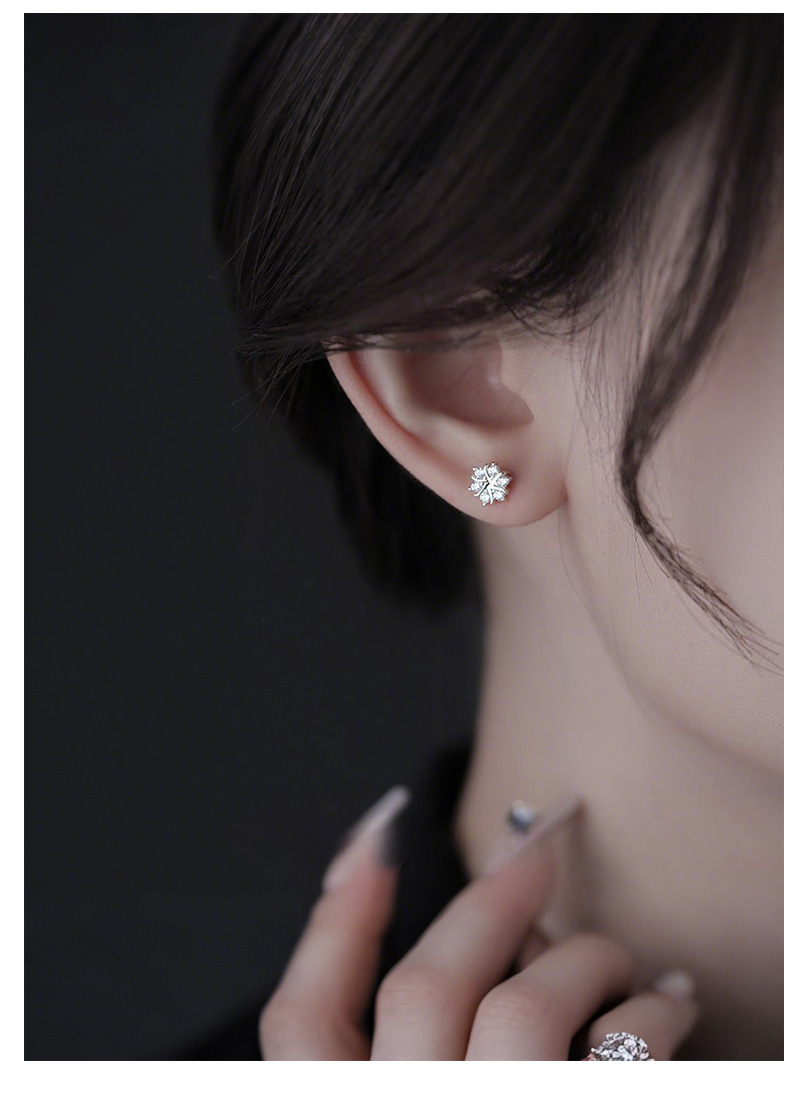 S999 シルバースノーフレークイヤリング、女性用、ニッチデザインイヤリング、就寝時に外す必要なし、輝くダイヤモンドジュエリー、秋冬 C01326