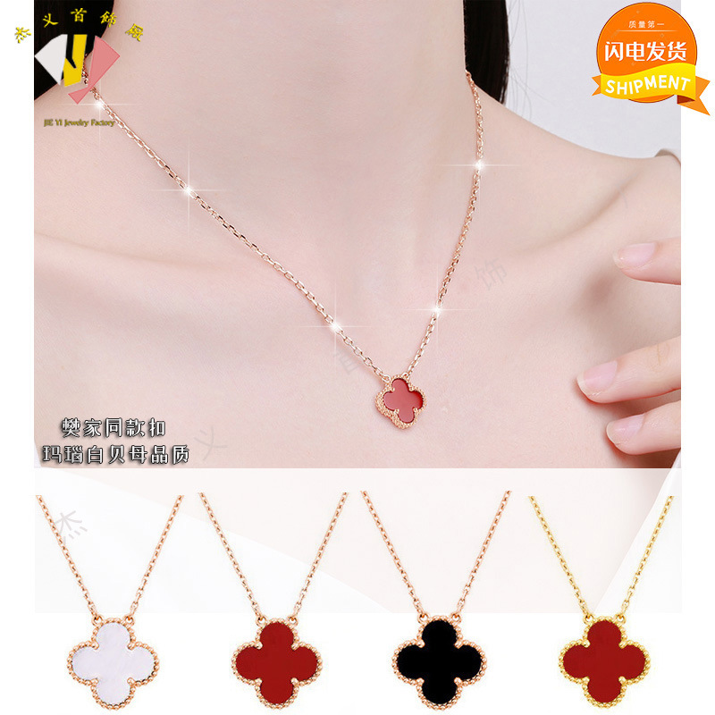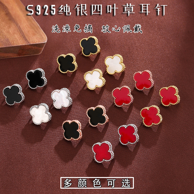 S925純銀ピアス四葉草ピアス高品質瑪瑙白貝母イヤリング高級感大衆アクセサリーイヤリング