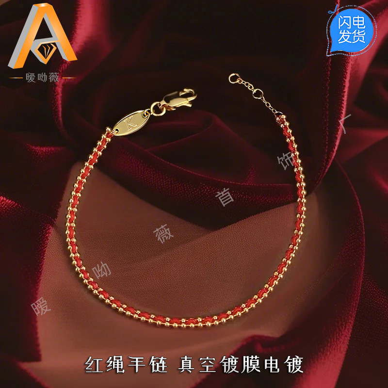 本物の金メッキの干支年フレンチレッドロープブレスレット女性用、何秋氏の妹夫と同じスタイルの小さな赤いブックブレスレット女性用ハンドジュエリー