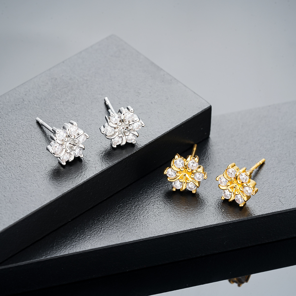 ジルコン秋冬雪花ピアス女性耳穴ピアス小衆デザイン感高級小型冷淡風イヤリング2022