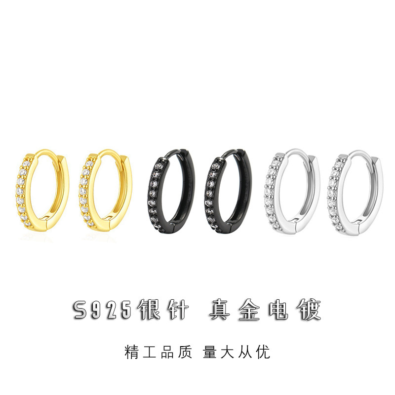 欧米の国境を越えた耳輪S925純銀耳針耳ボタン円形ジルコンイヤリング女性ファッションジュエリー小衆耳飾り