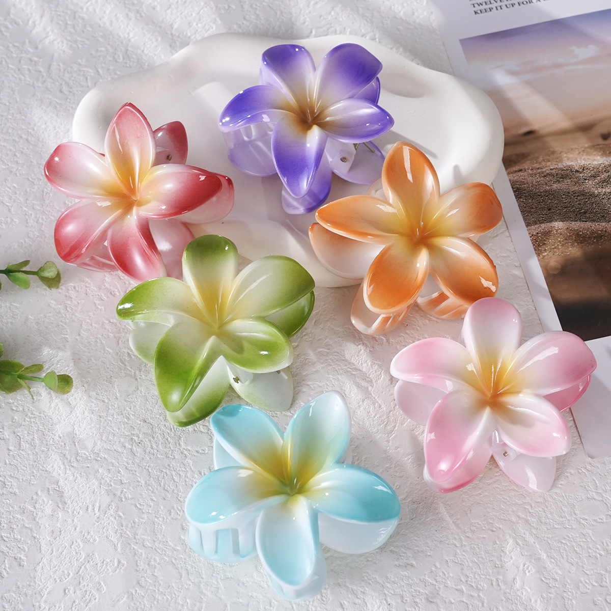 女式新款花朵抓夹渐变色喷漆高级感鸡蛋花发夹跨境热销后脑勺发饰