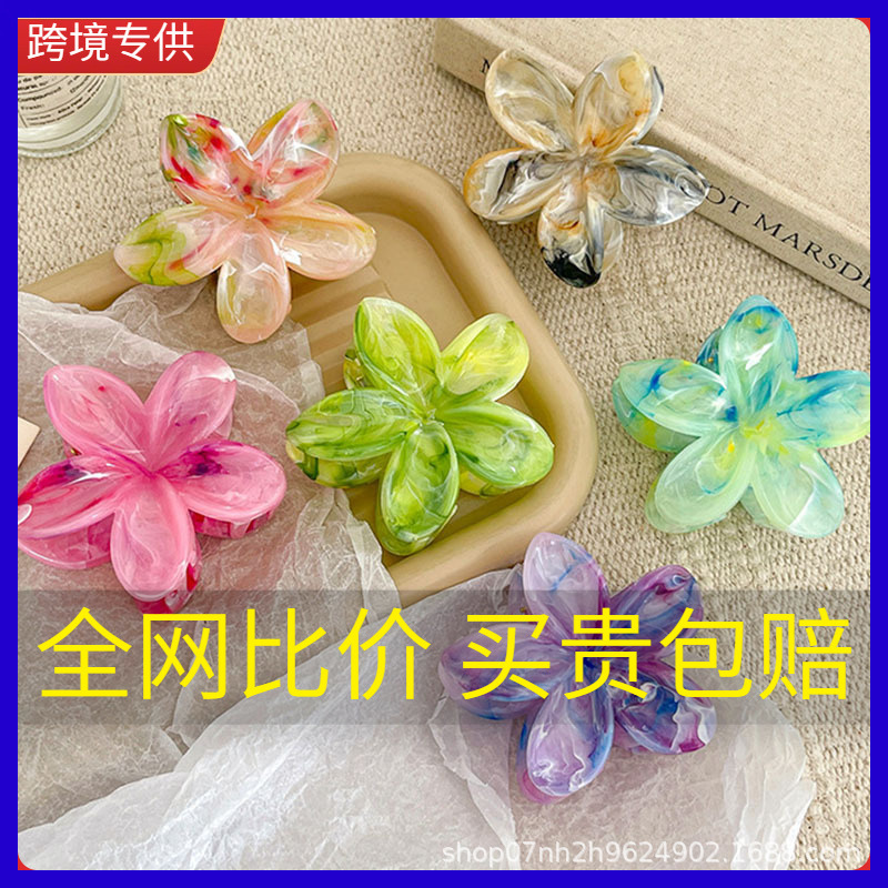 欧美跨境8CM鸡蛋花抓夹度假风紫荆花发夹后脑勺大号盘发鲨鱼夹女