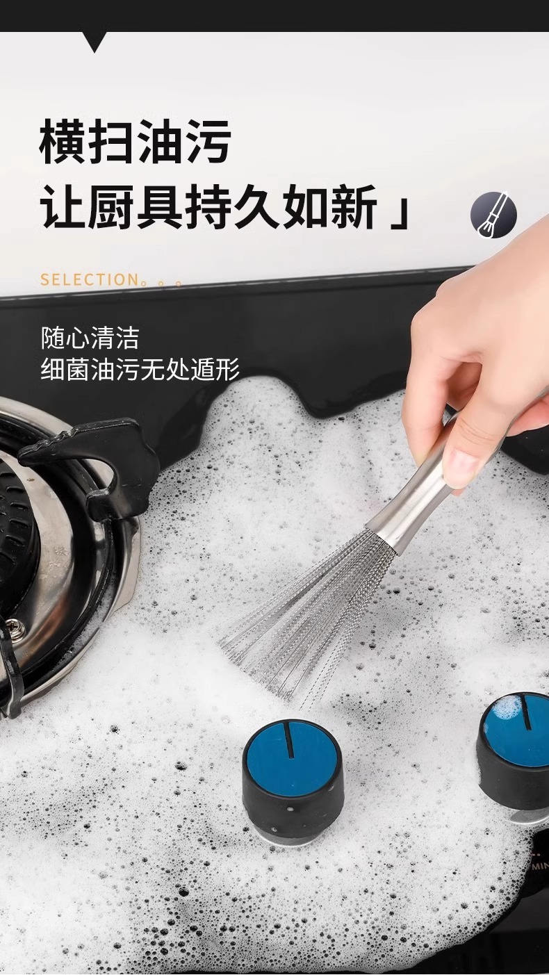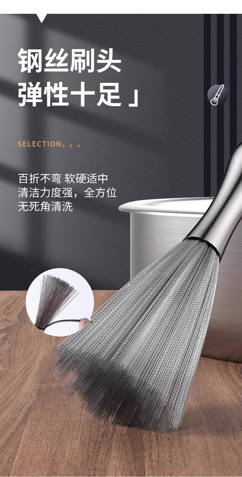 ステンレス製の鍋用ブラシ、家庭用延長鋼線ブラシ、キッチンの汚れを落とし、鍋や食器を傷めません。