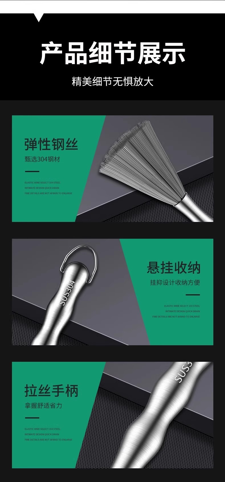 德国304不锈钢洗锅刷子刷锅纳米厨房家用除垢油污钢丝清洁刷
